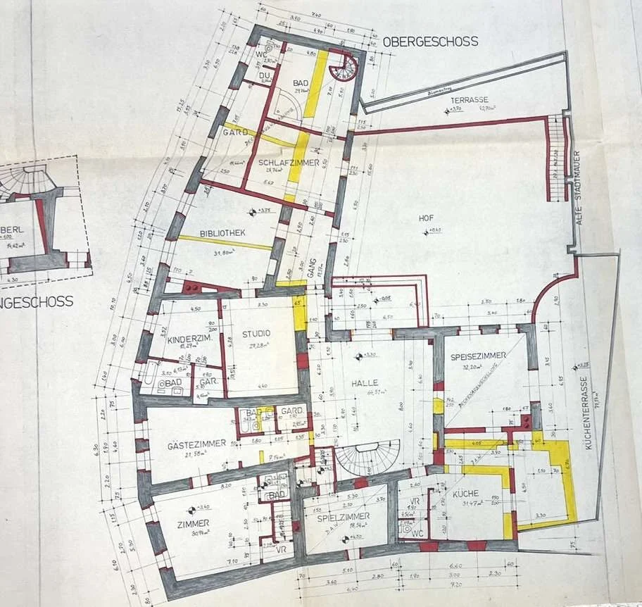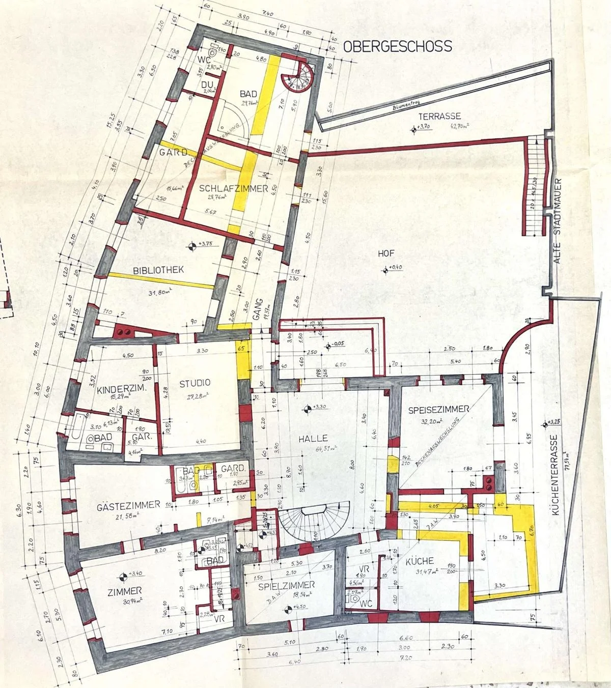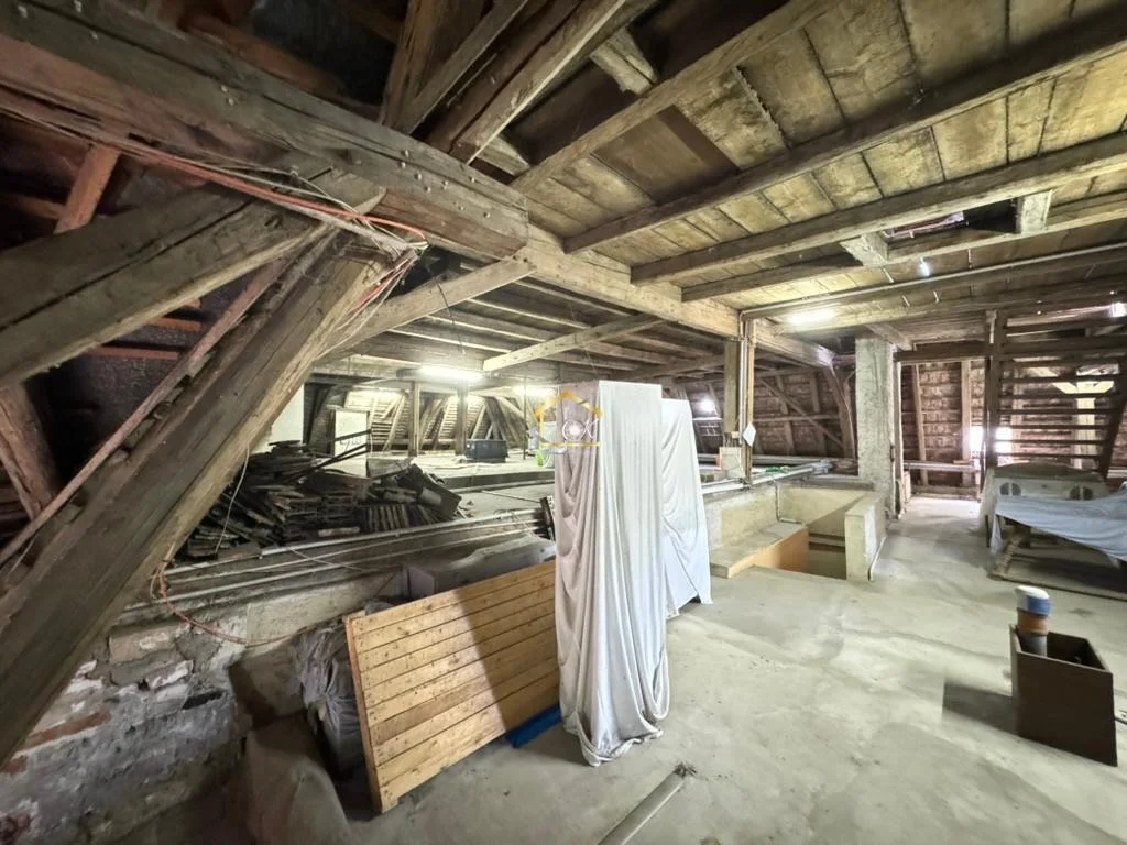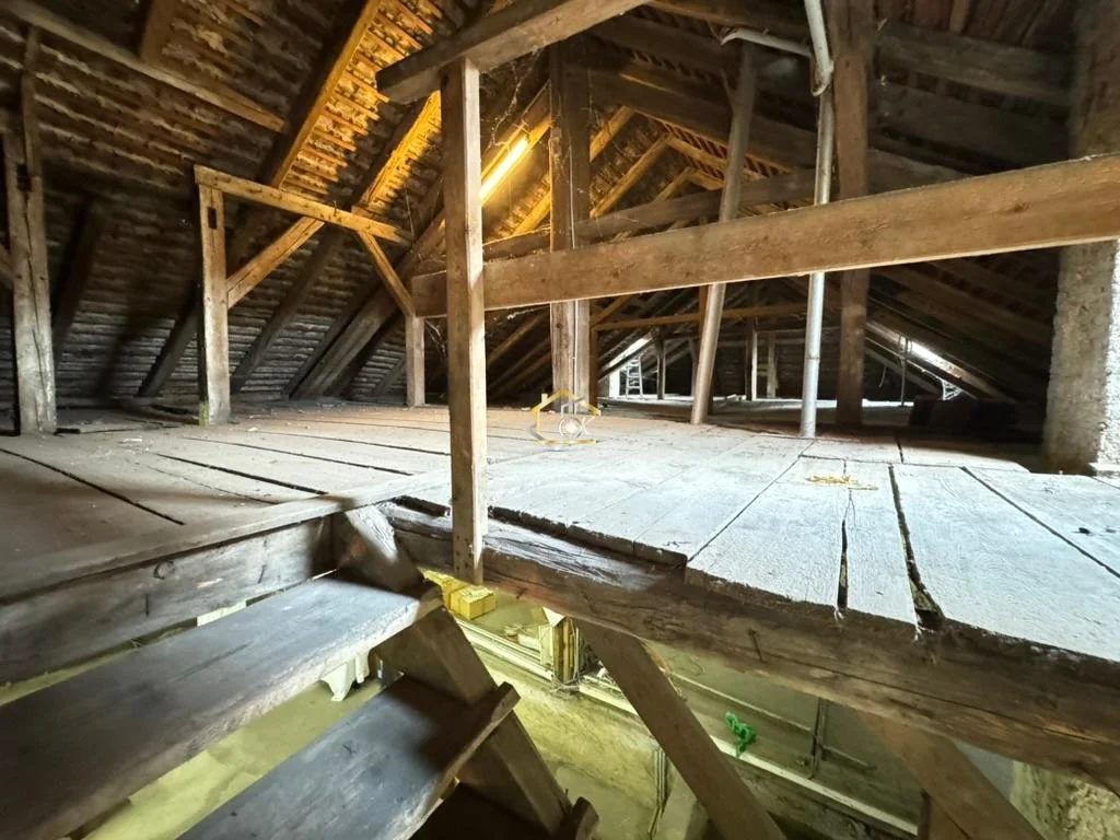 Das Dachgeschoss, mit einer Deckenhöhe von über drei Metern und einer Fläche von über 400 Quadratmetern, bietet enormes Potenzial und kann vollständig zu zusätzlichem Wohnraum umgestaltet werden.