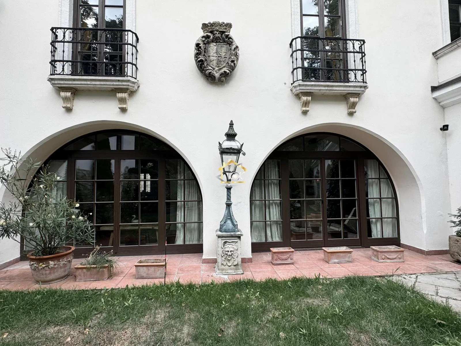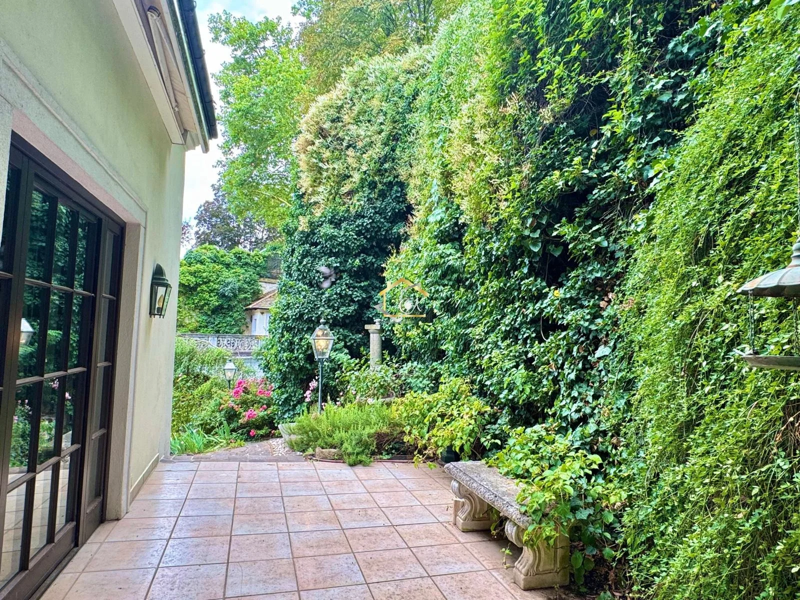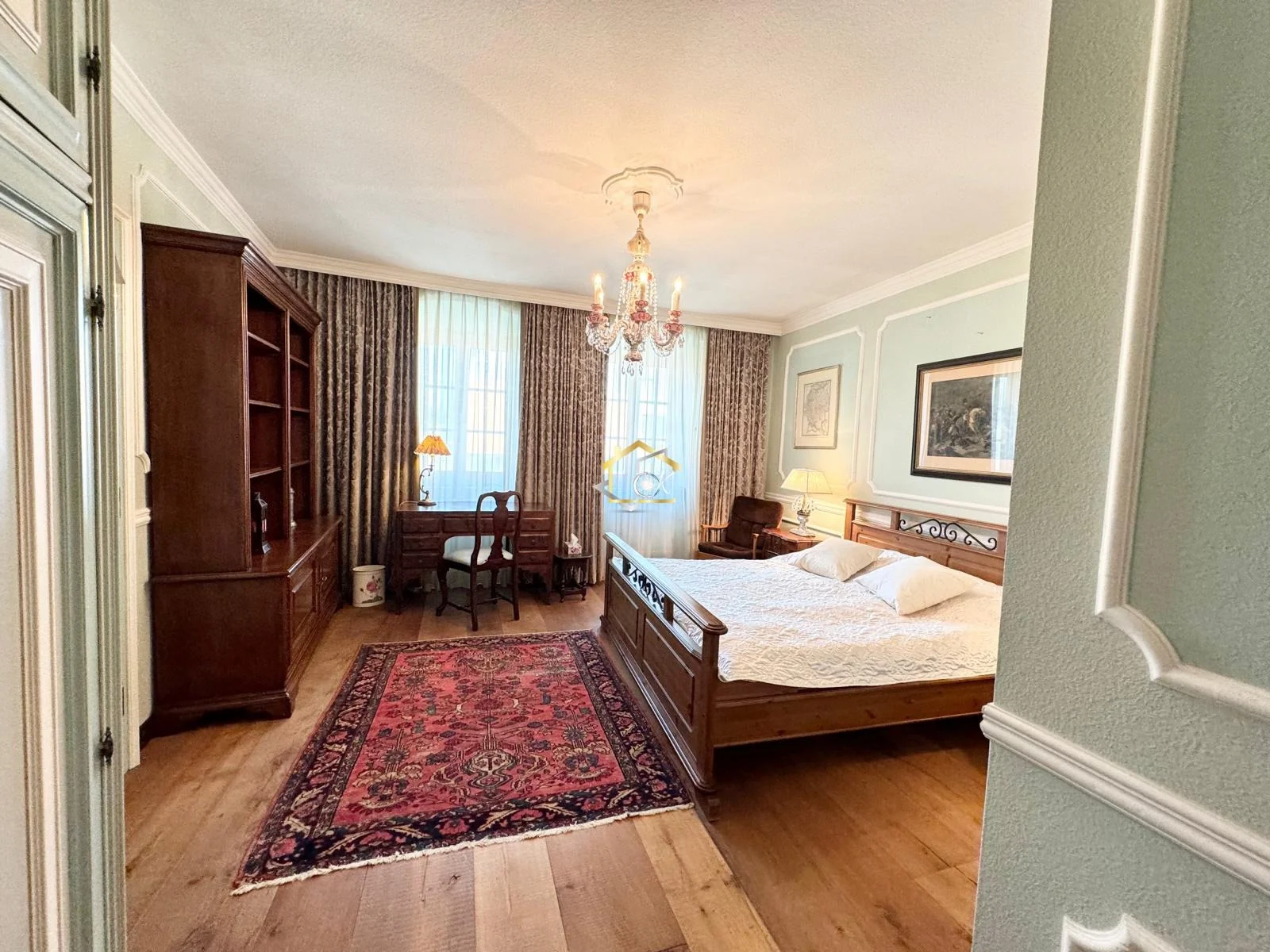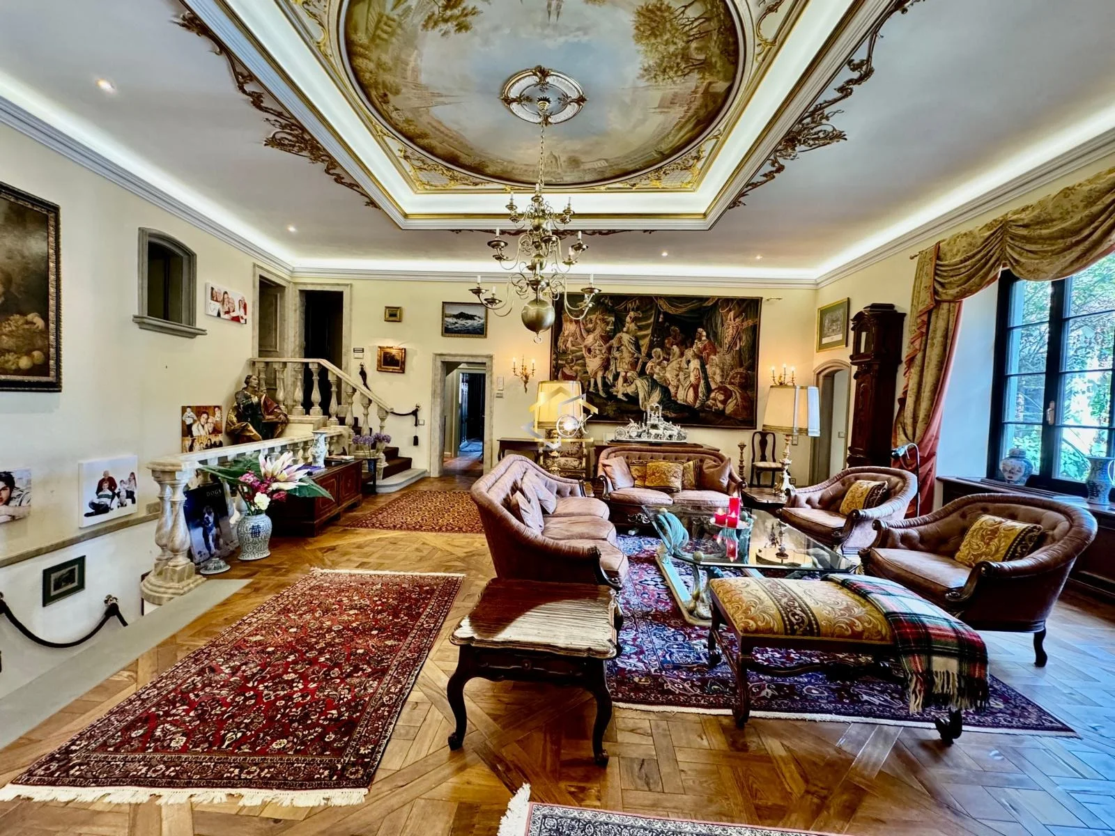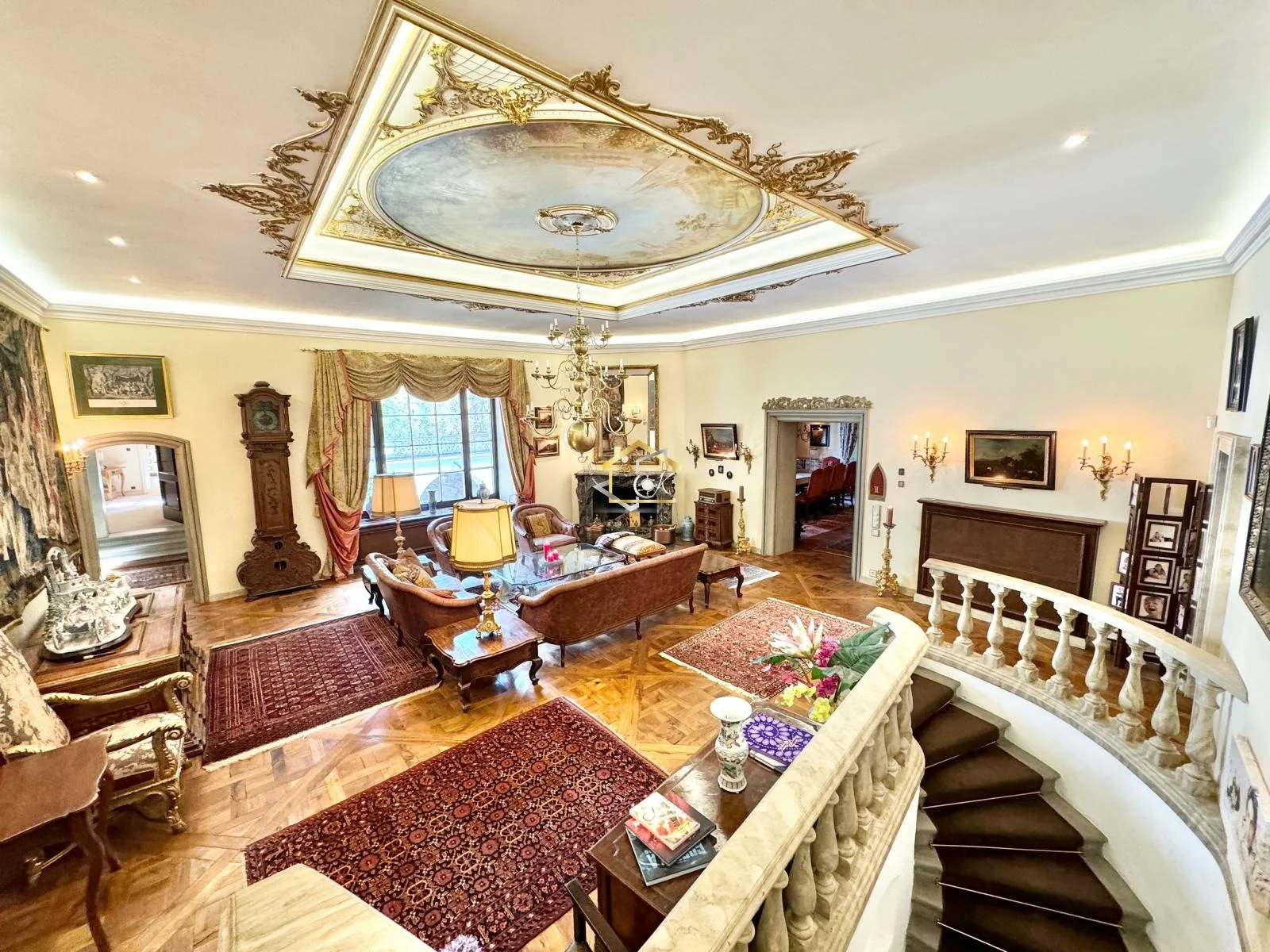 Das Obergeschoss bietet eine Küche und ein Esszimmer mit Zugang zu einer großen Terrasse, ein Kaminzimmer, ein Büro, fünf Schlafzimmer und fünf Bäder. Ein charmantes Studio-Apartment mit eigenem Eingang erweitert das Raumangebot.