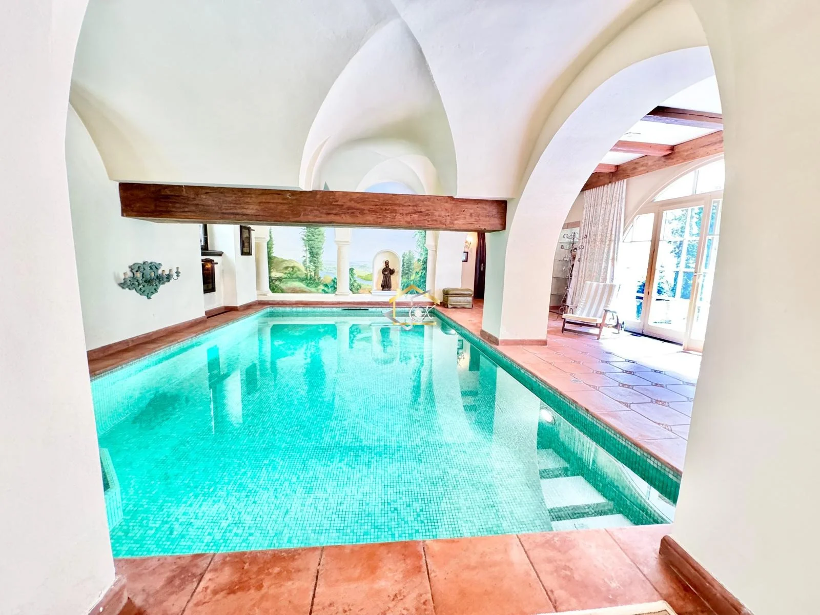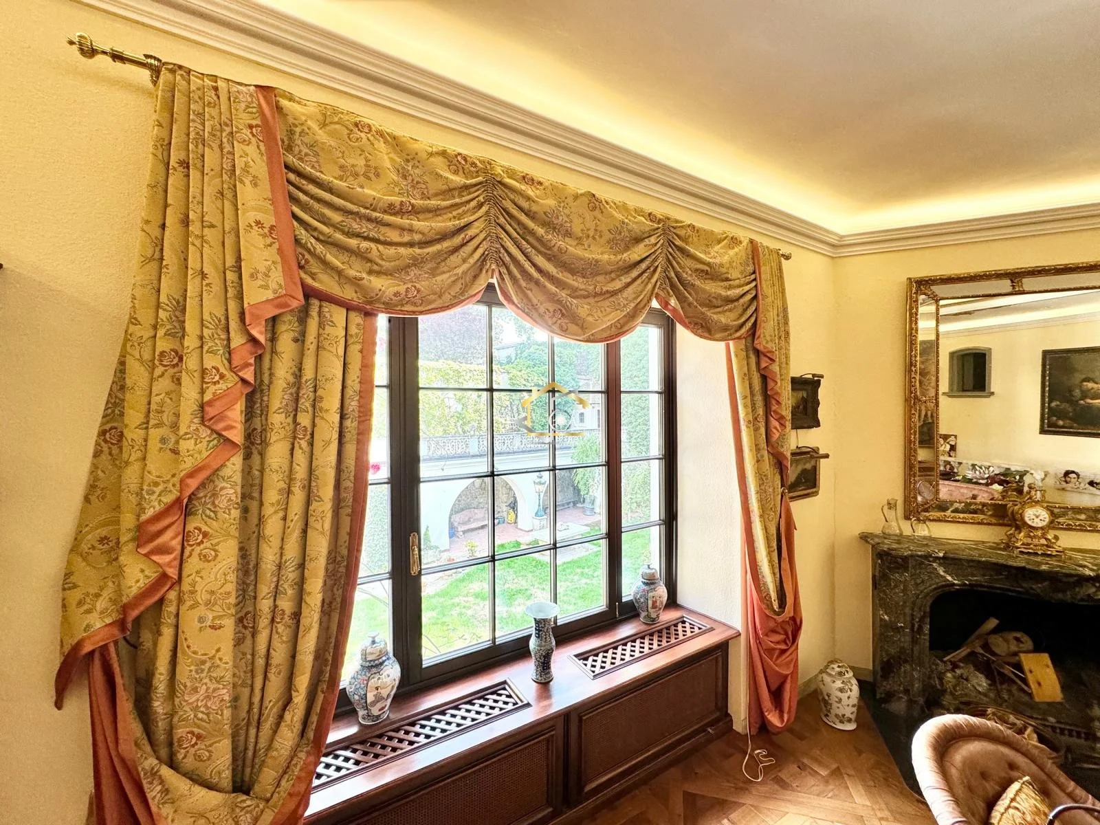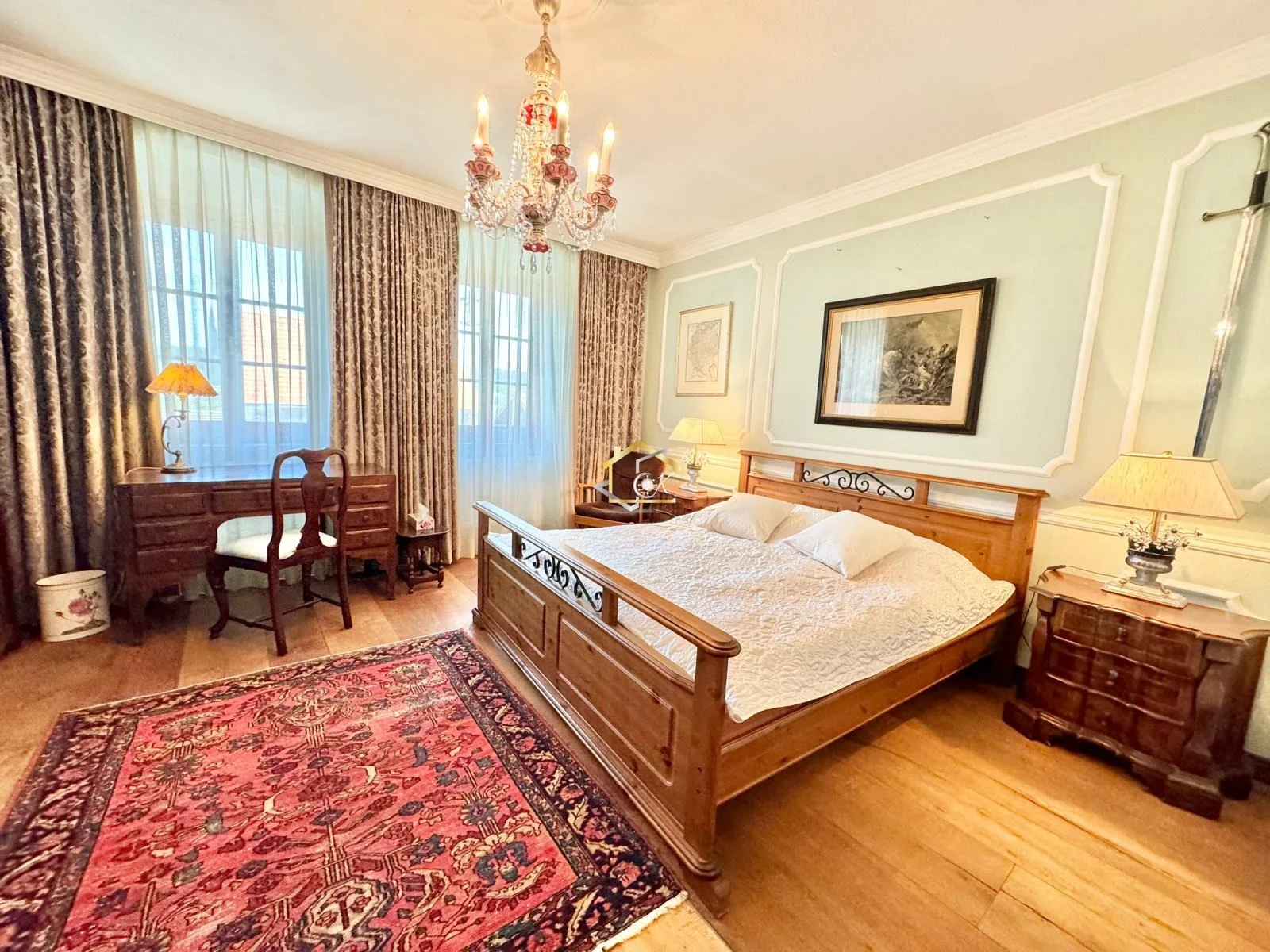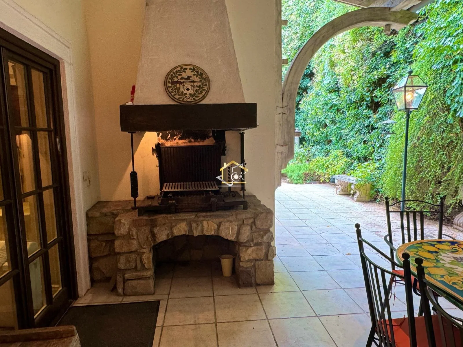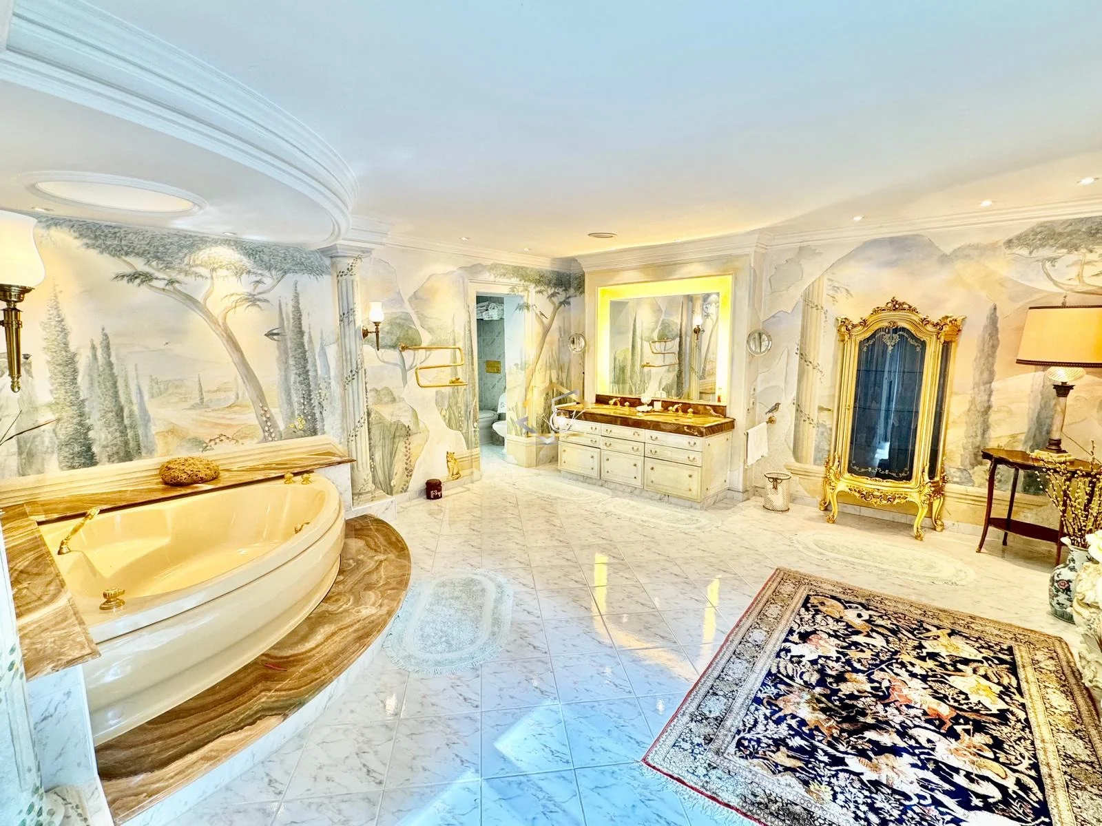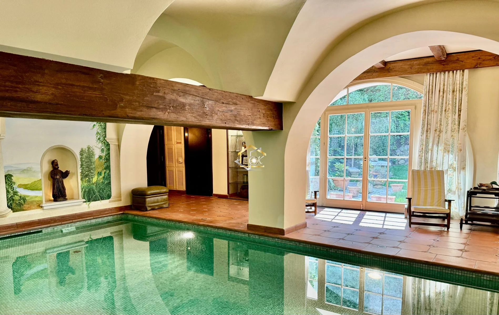 Das Obergeschoss bietet eine Küche und ein Esszimmer mit Zugang zu einer großen Terrasse, ein Kaminzimmer, ein Büro, fünf Schlafzimmer und fünf Bäder. Ein charmantes Studio-Apartment mit eigenem Eingang erweitert das Raumangebot.