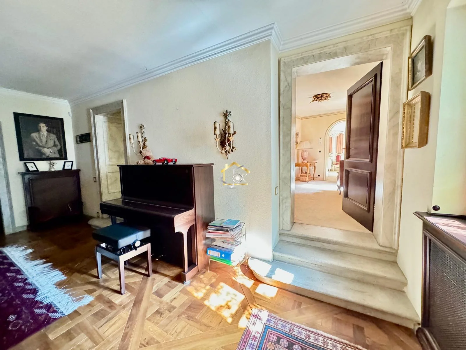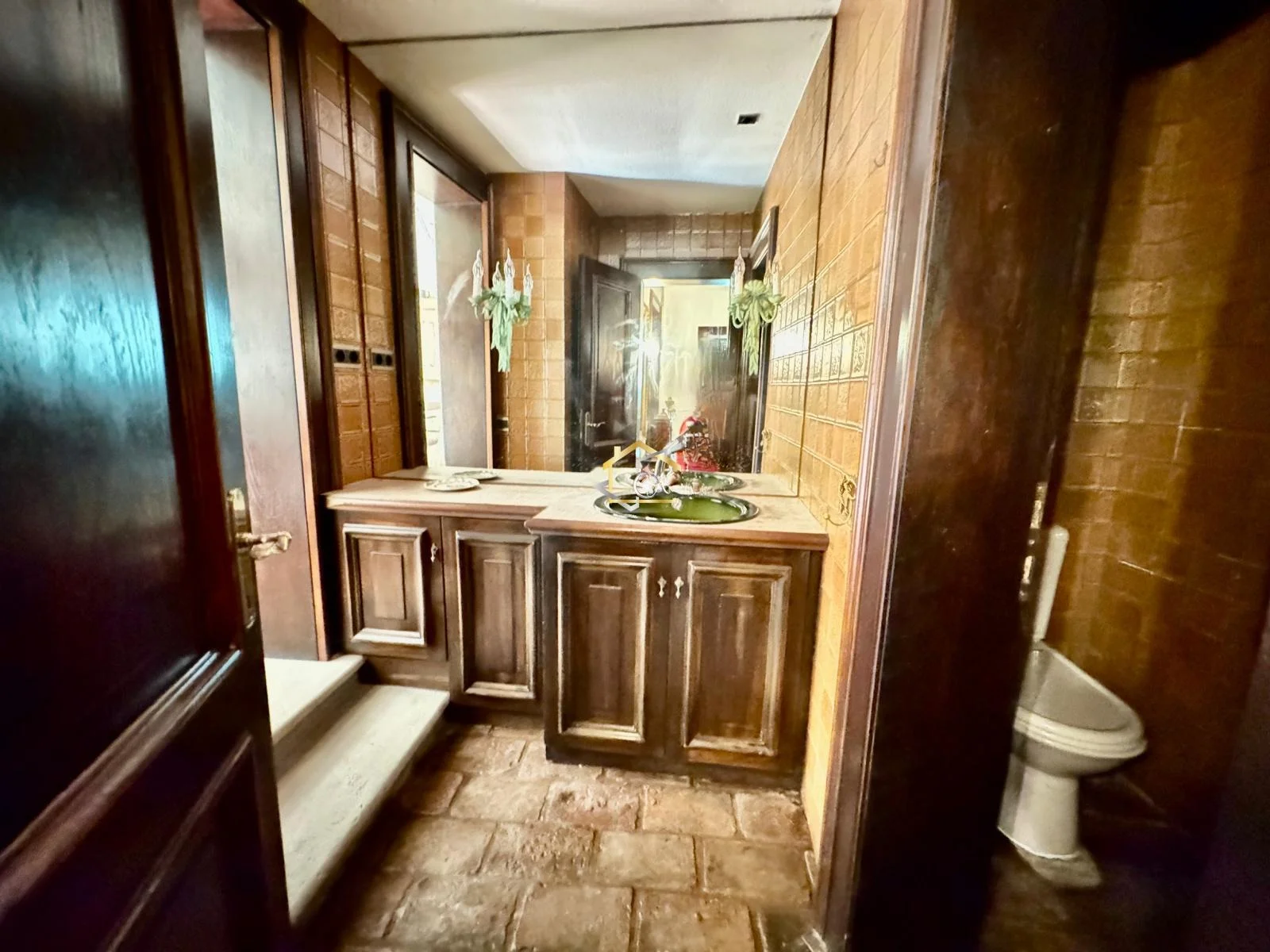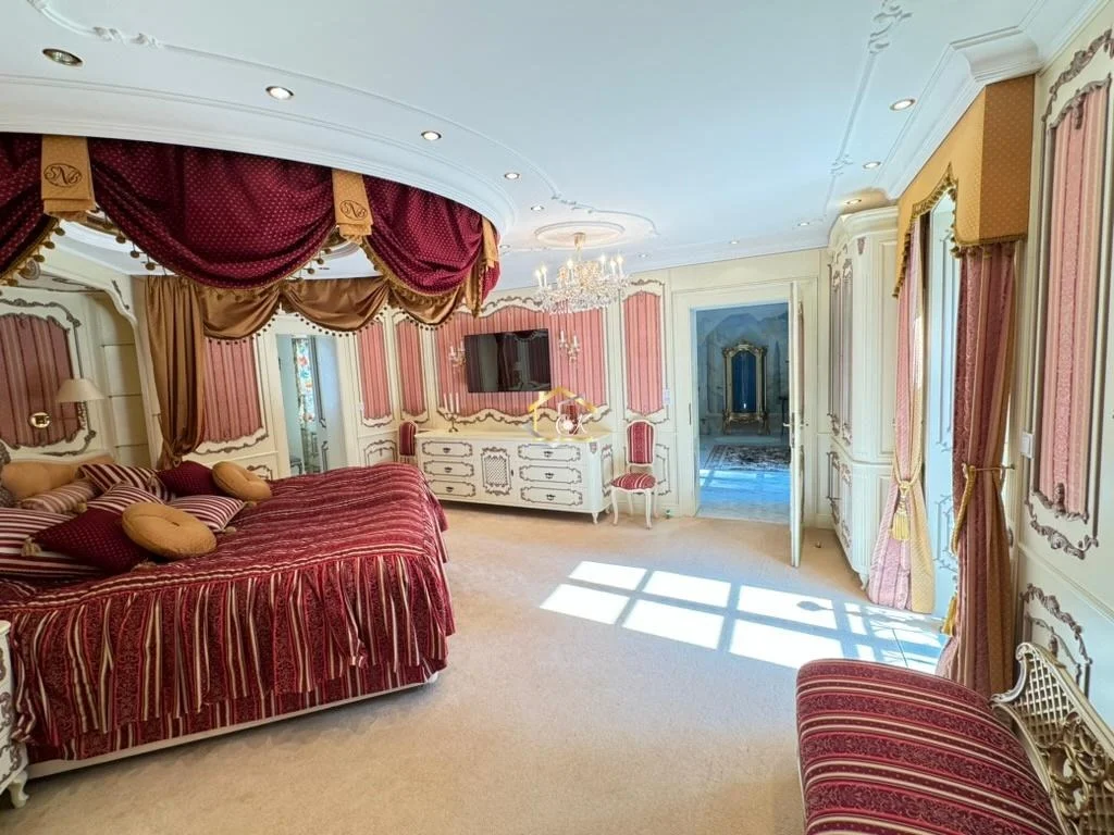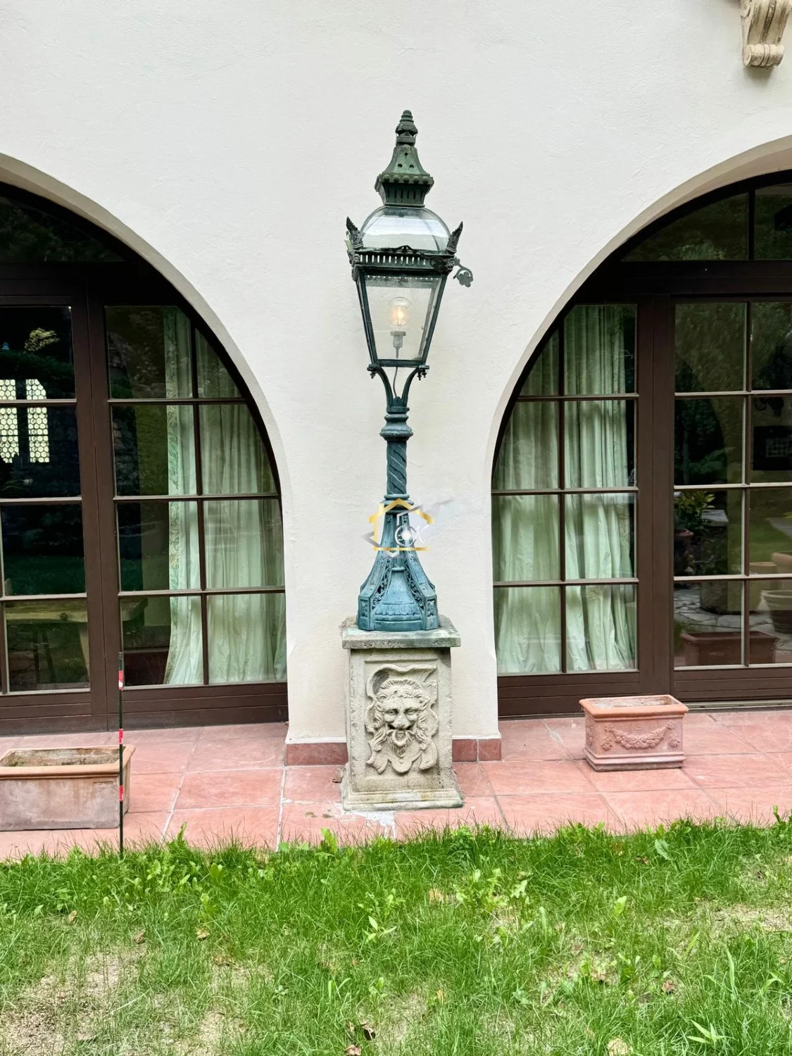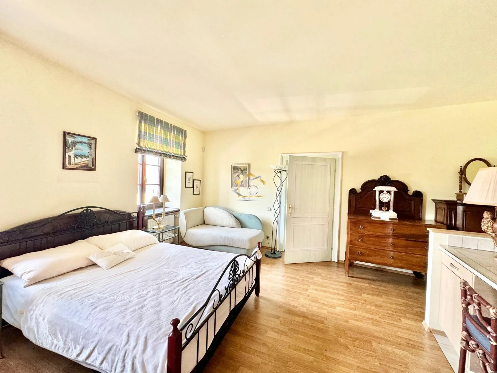 Das Obergeschoss bietet eine Küche und ein Esszimmer mit Zugang zu einer großen Terrasse, ein Kaminzimmer, ein Büro, fünf Schlafzimmer und fünf Bäder. Ein charmantes Studio-Apartment mit eigenem Eingang erweitert das Raumangebot.