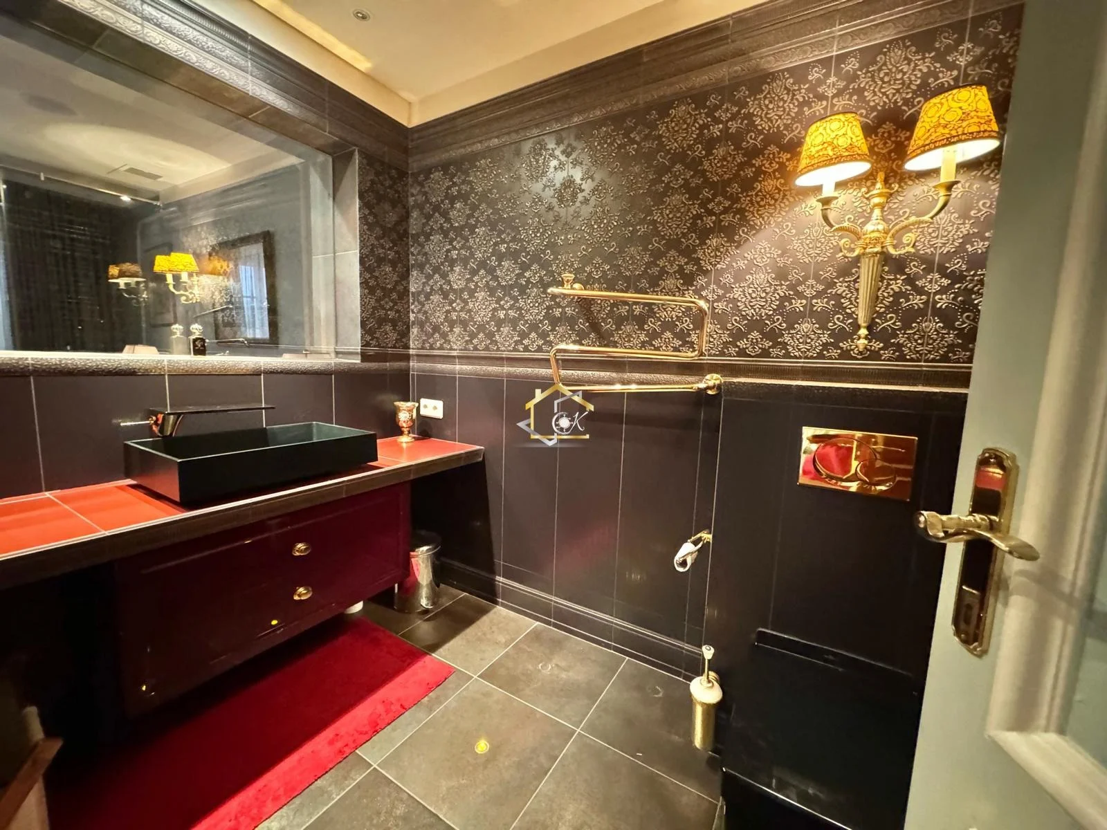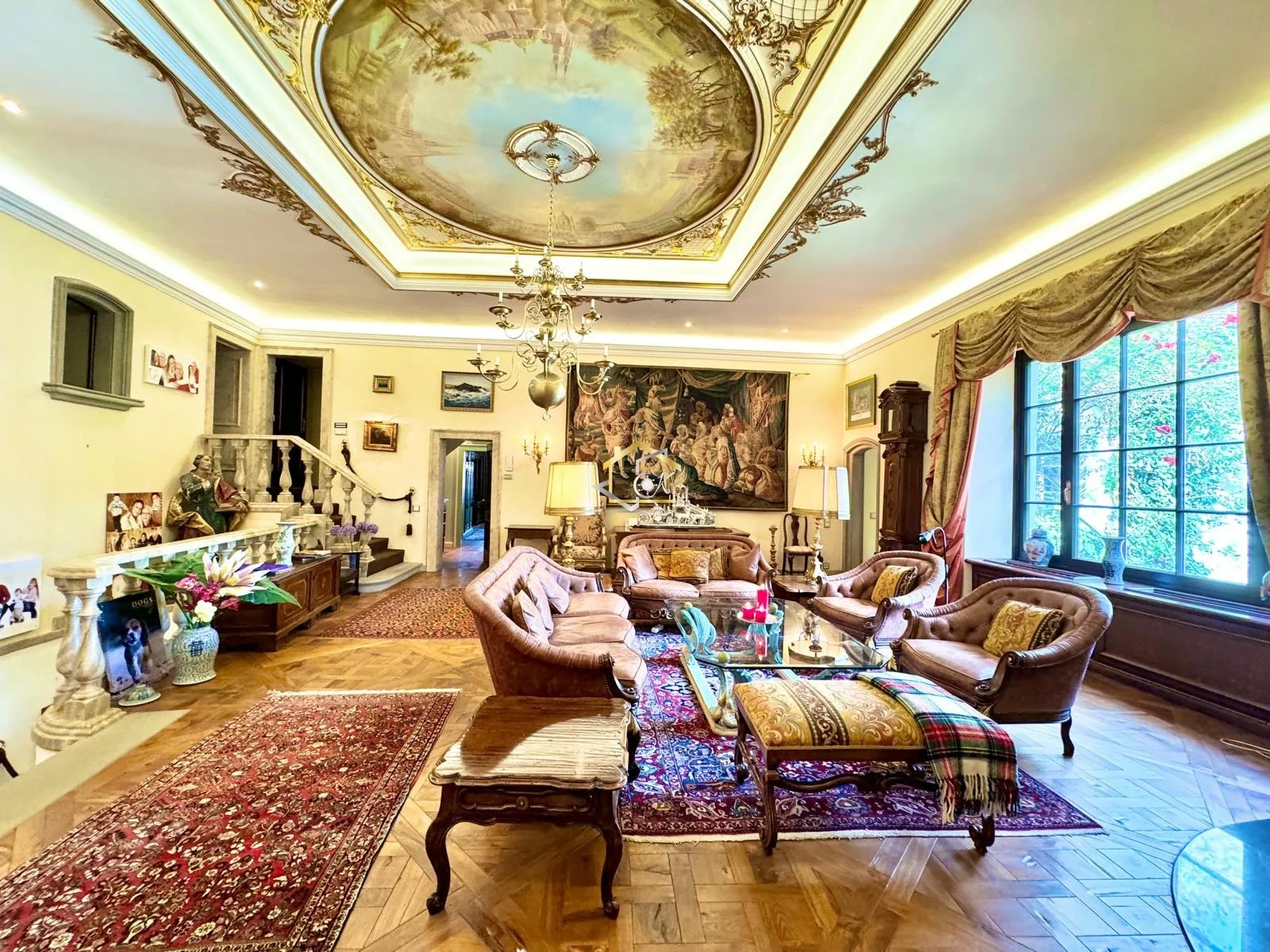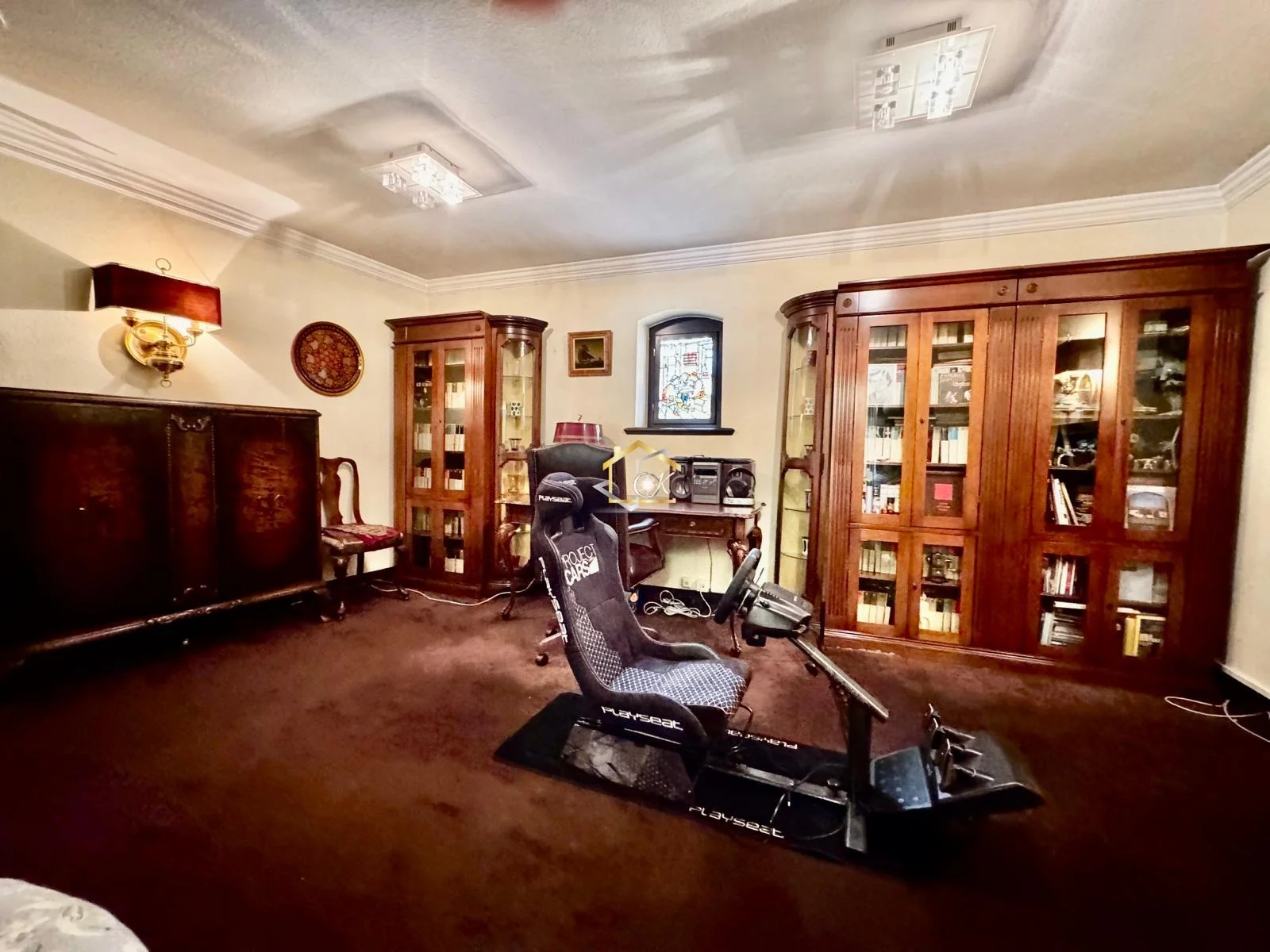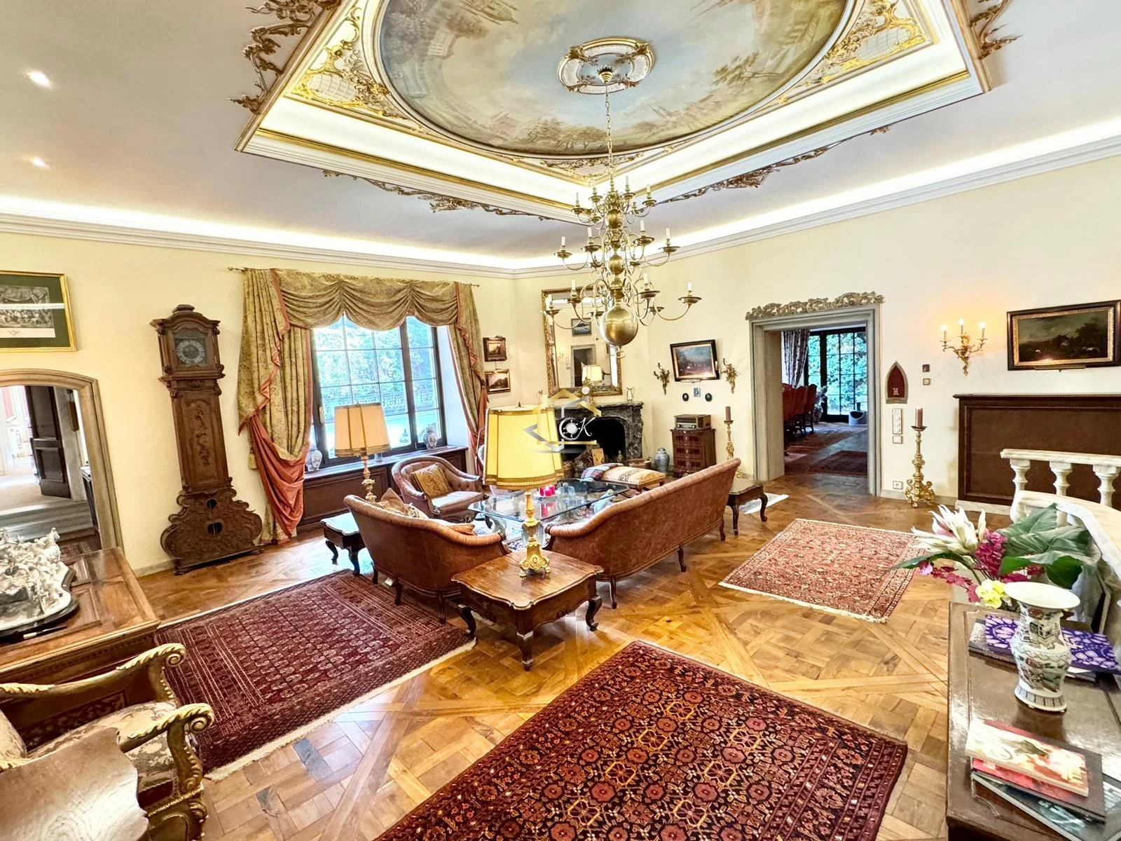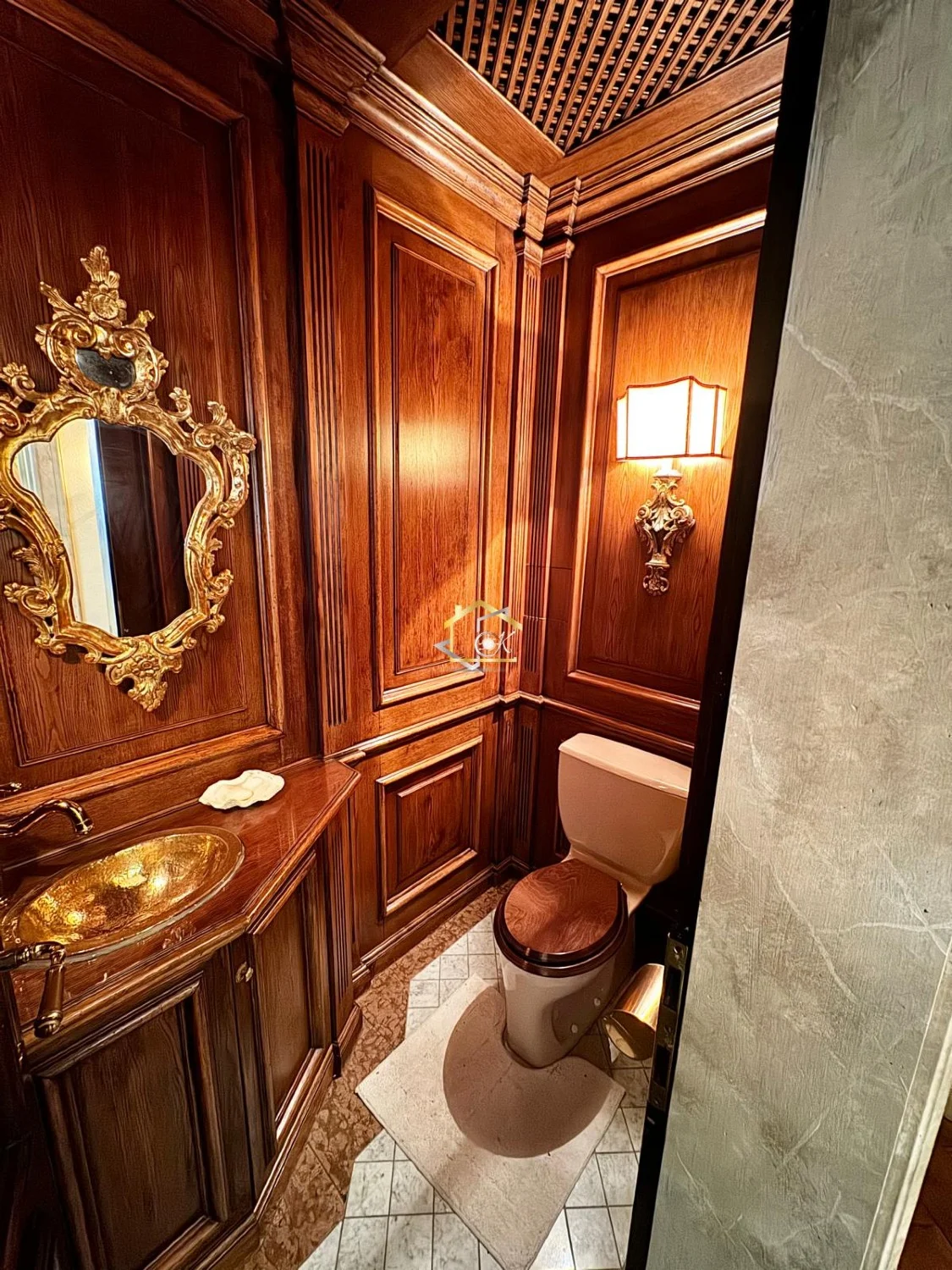 Das Obergeschoss bietet eine Küche und ein Esszimmer mit Zugang zu einer großen Terrasse, ein Kaminzimmer, ein Büro, fünf Schlafzimmer und fünf Bäder. Ein charmantes Studio-Apartment mit eigenem Eingang erweitert das Raumangebot.