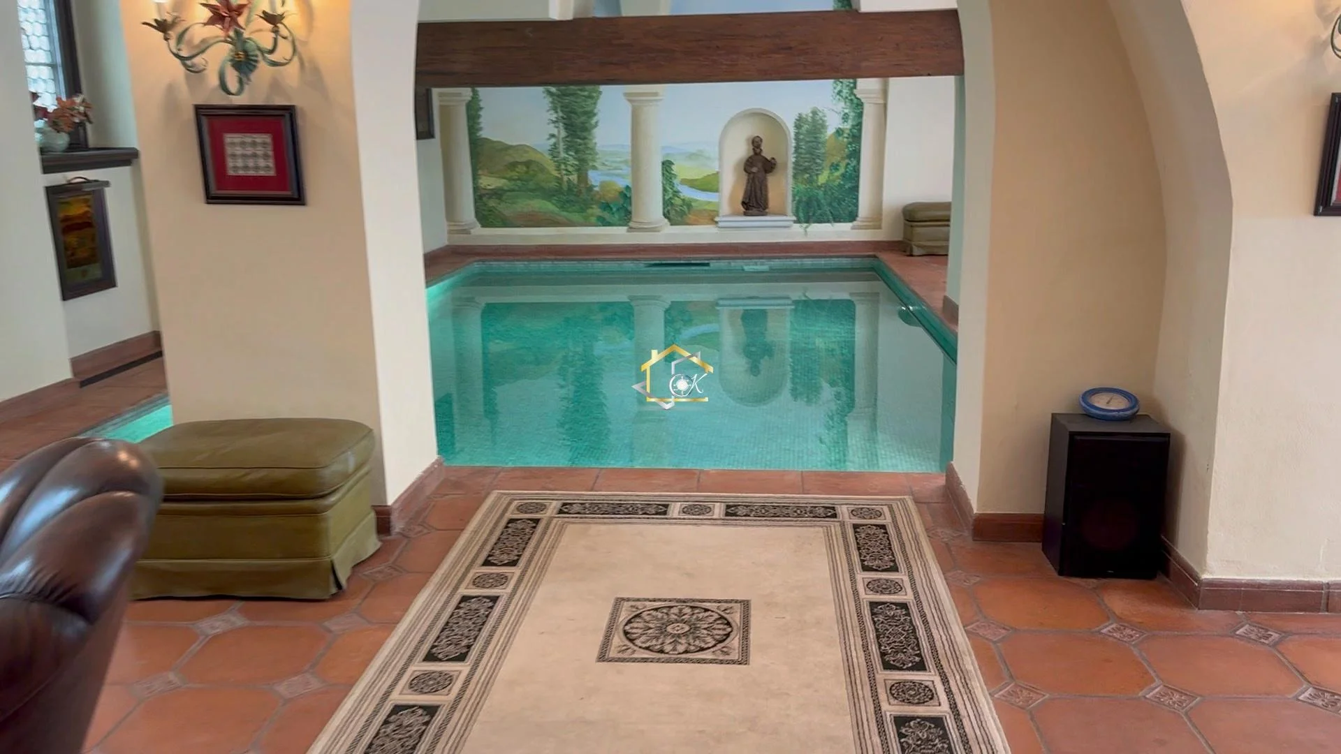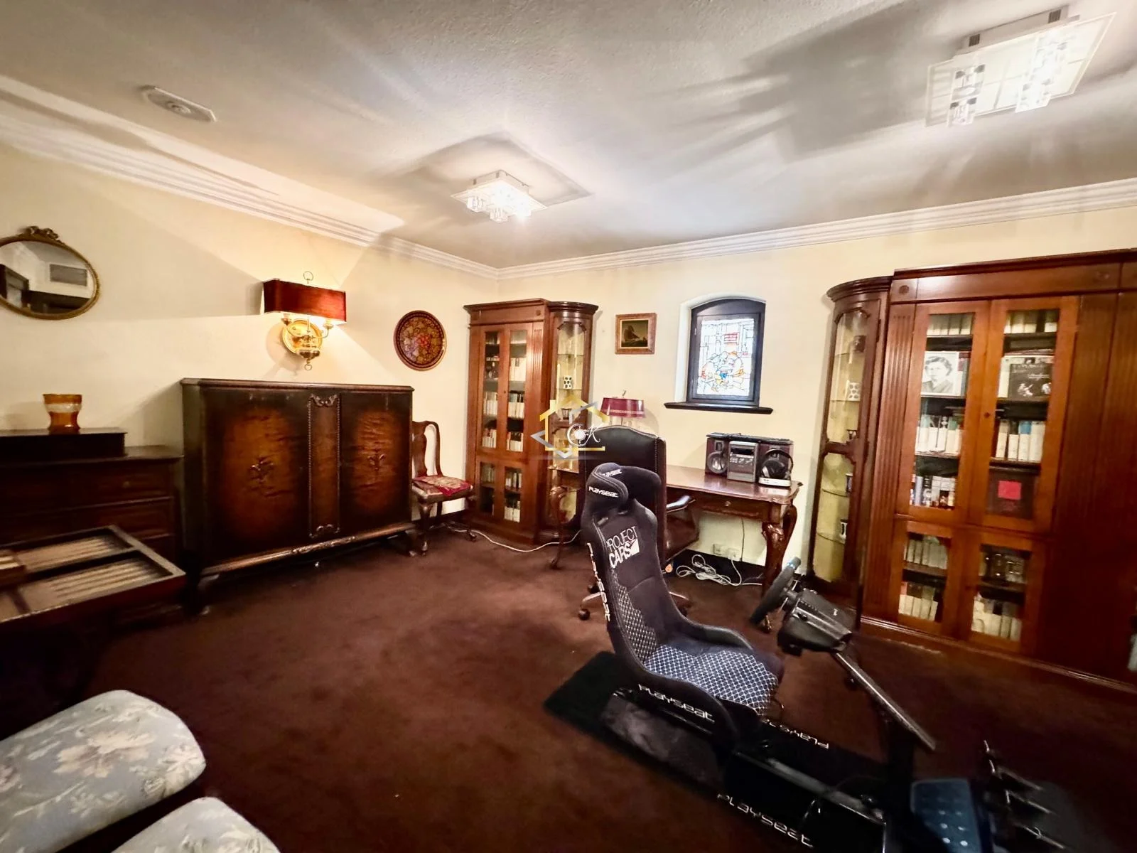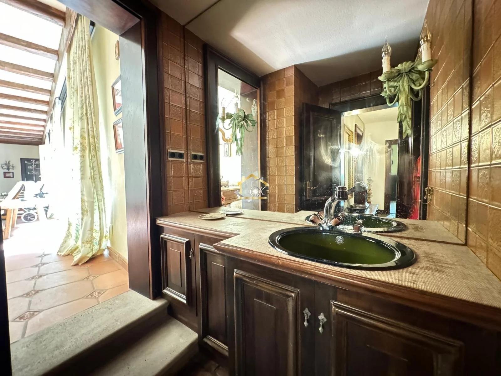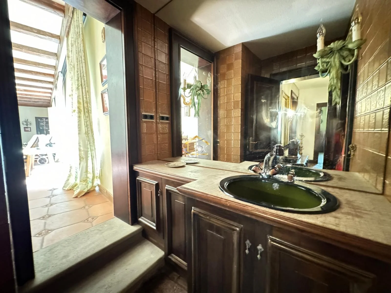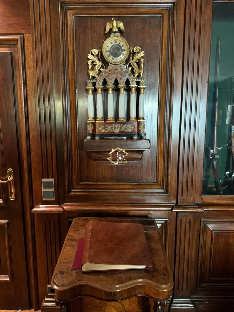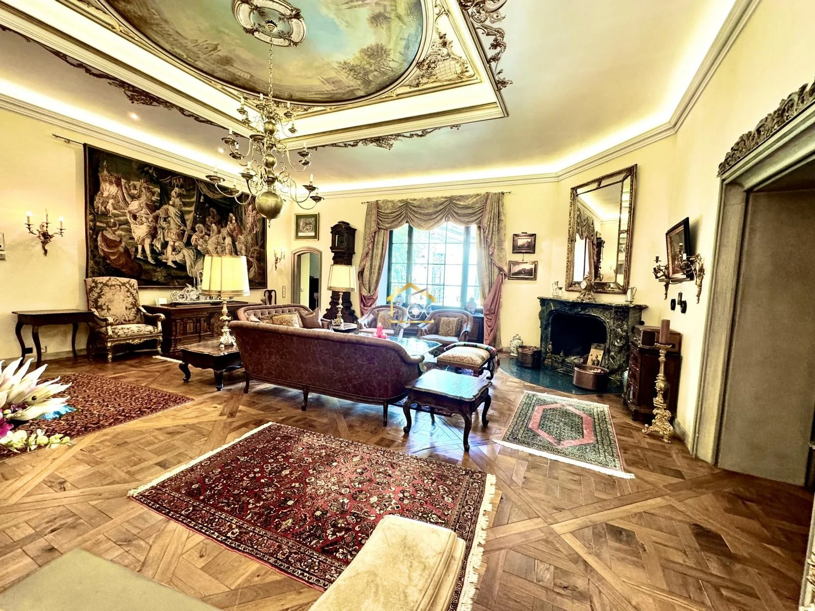 Das Obergeschoss bietet eine Küche und ein Esszimmer mit Zugang zu einer großen Terrasse, ein Kaminzimmer, ein Büro, fünf Schlafzimmer und fünf Bäder. Ein charmantes Studio-Apartment mit eigenem Eingang erweitert das Raumangebot.