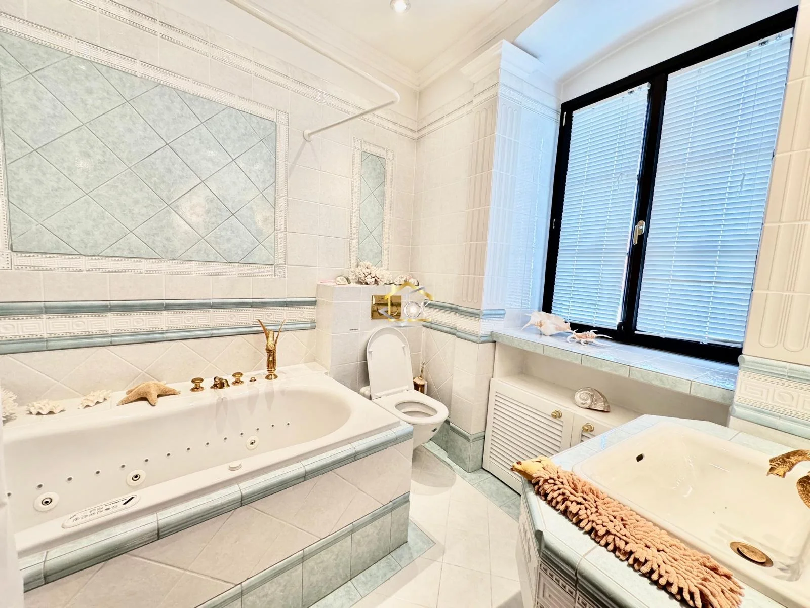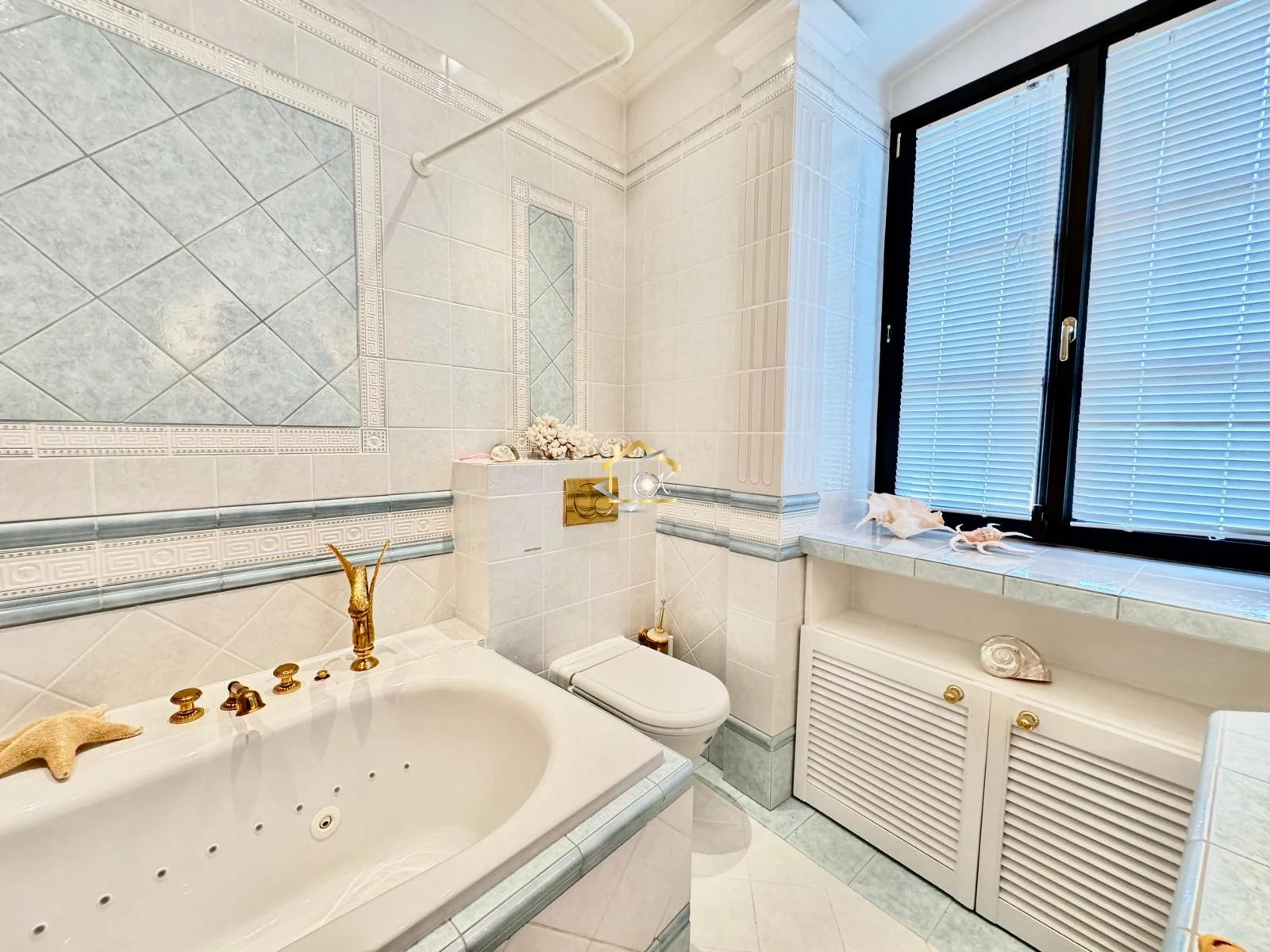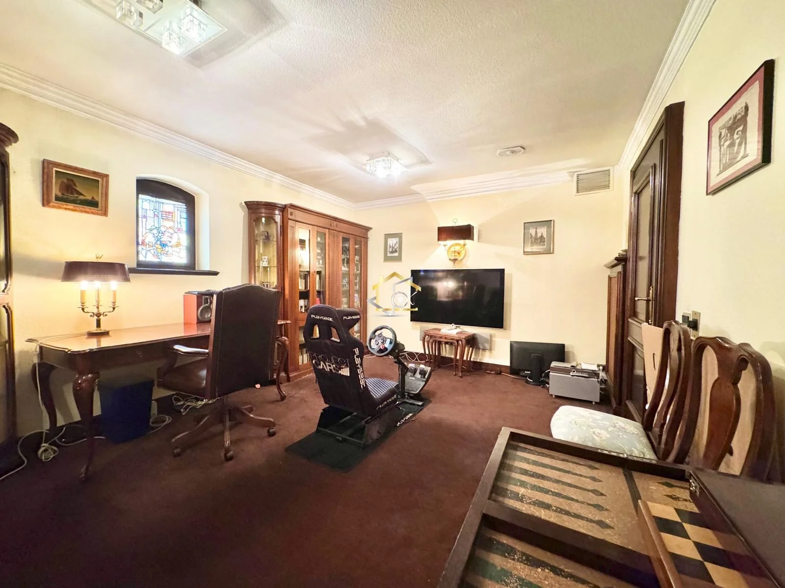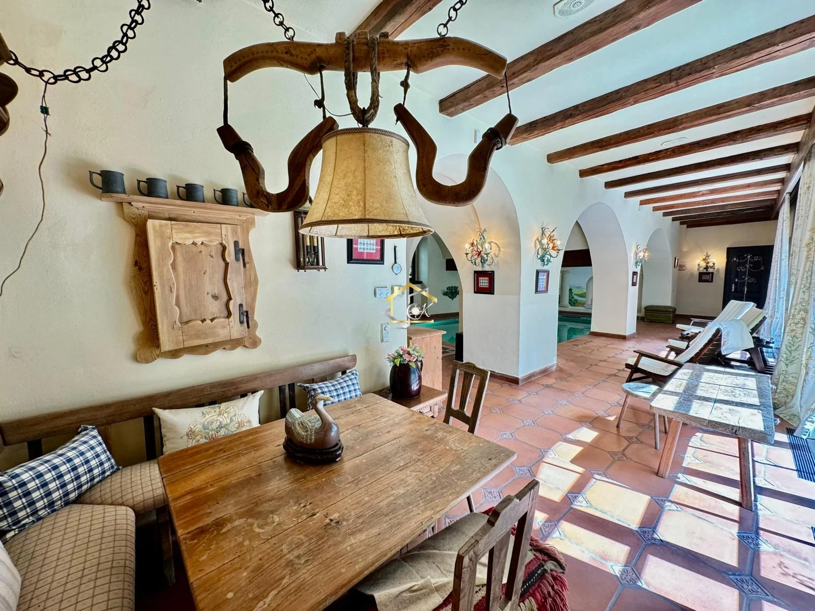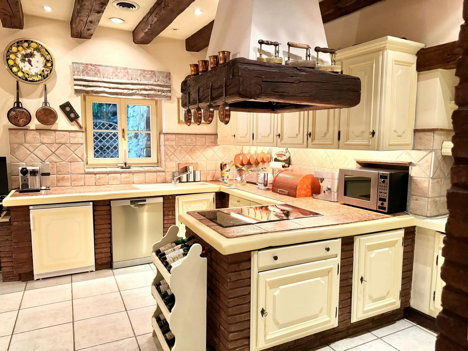 Das Obergeschoss bietet eine Küche und ein Esszimmer mit Zugang zu einer großen Terrasse, ein Kaminzimmer, ein Büro, fünf Schlafzimmer und fünf Bäder. Ein charmantes Studio-Apartment mit eigenem Eingang erweitert das Raumangebot.