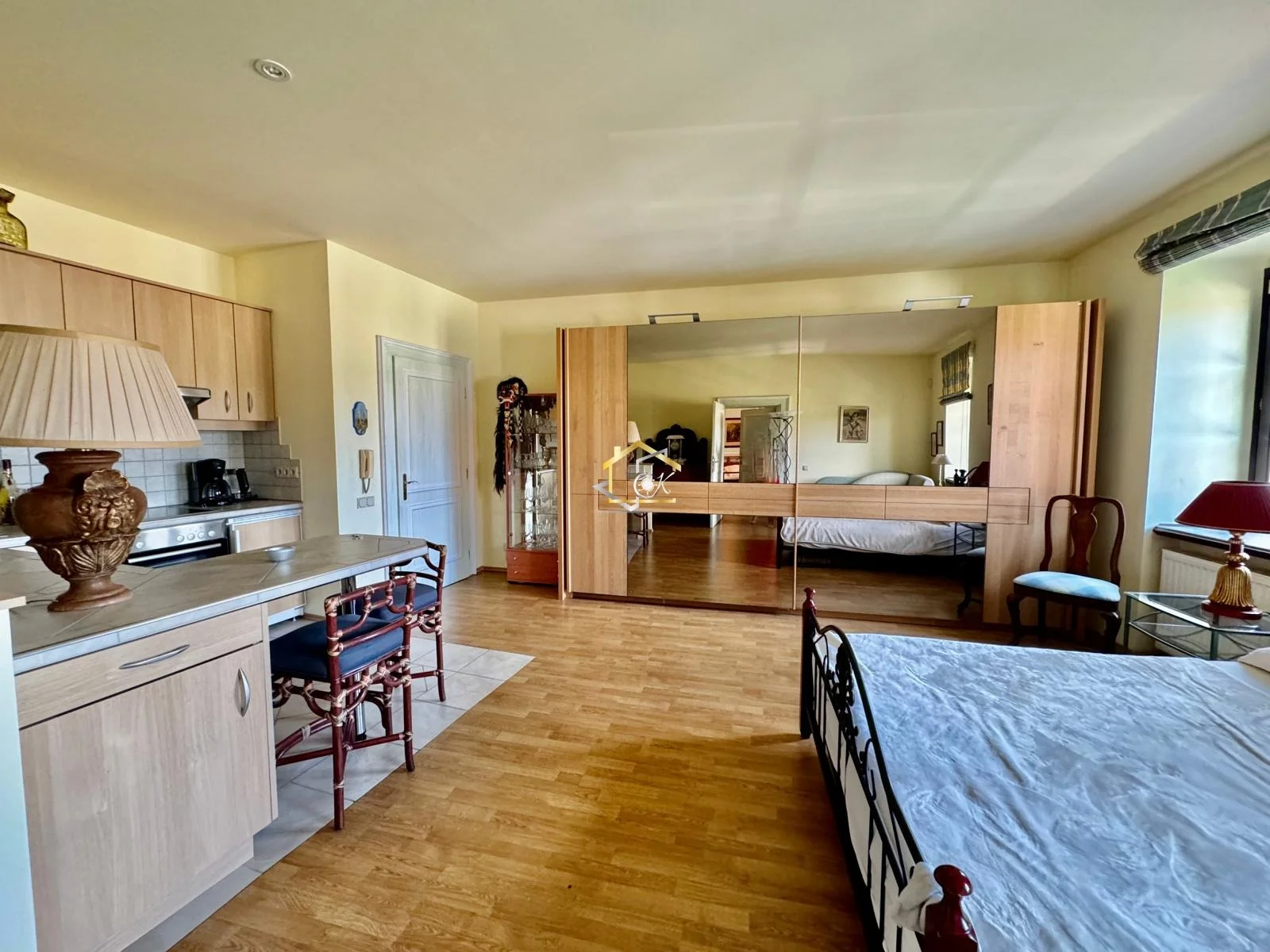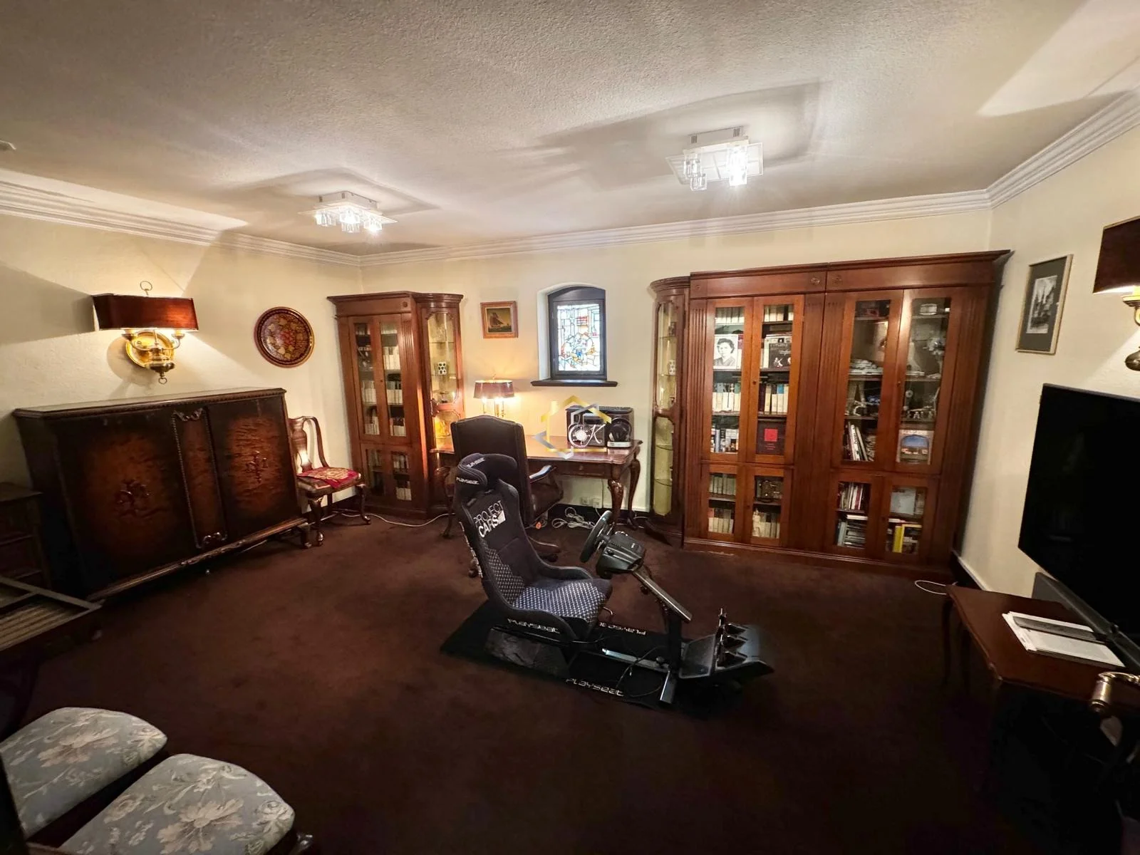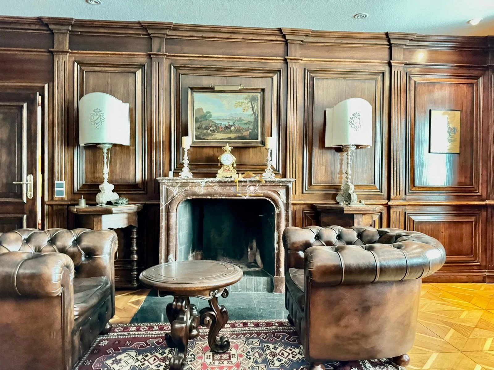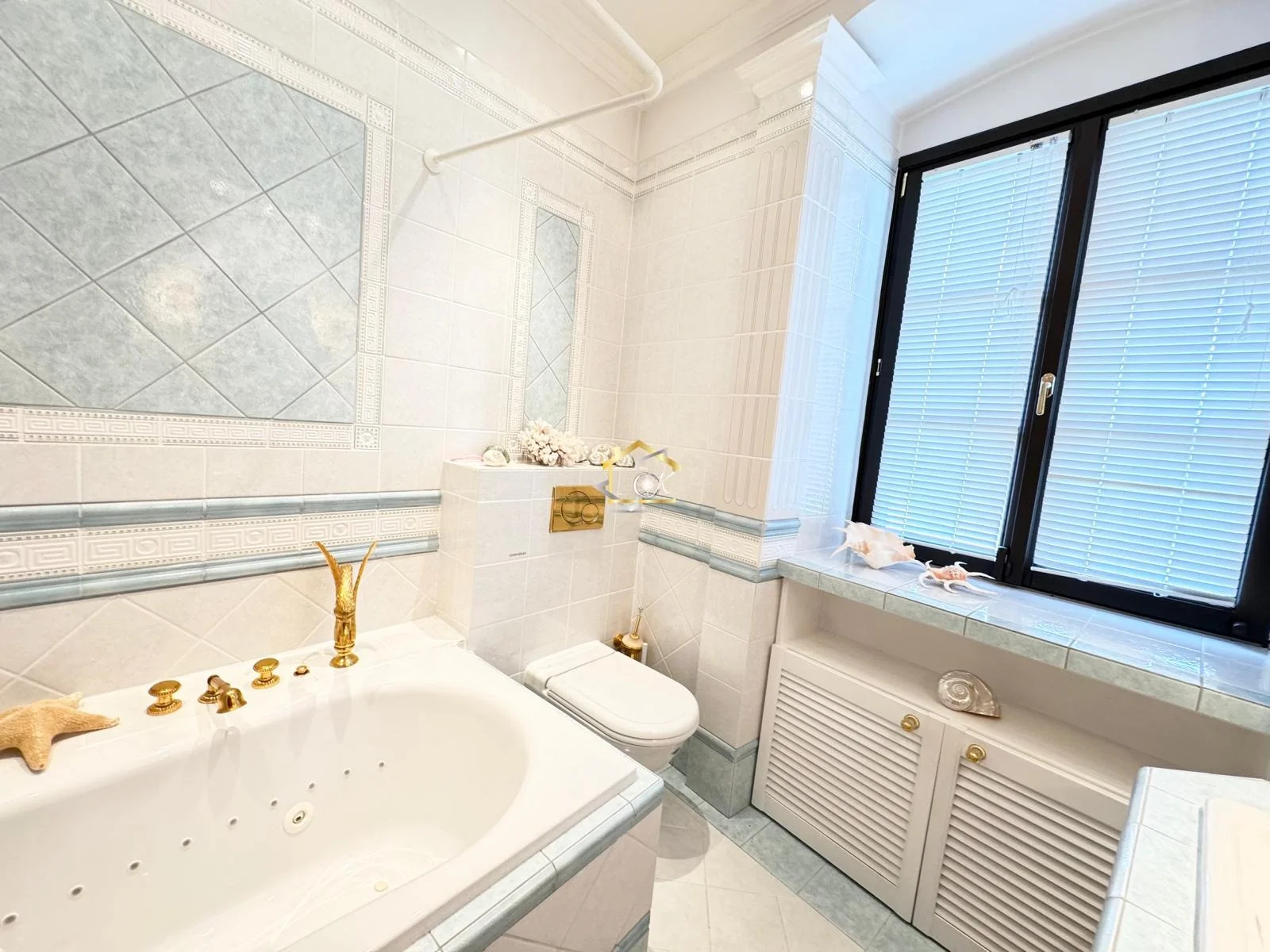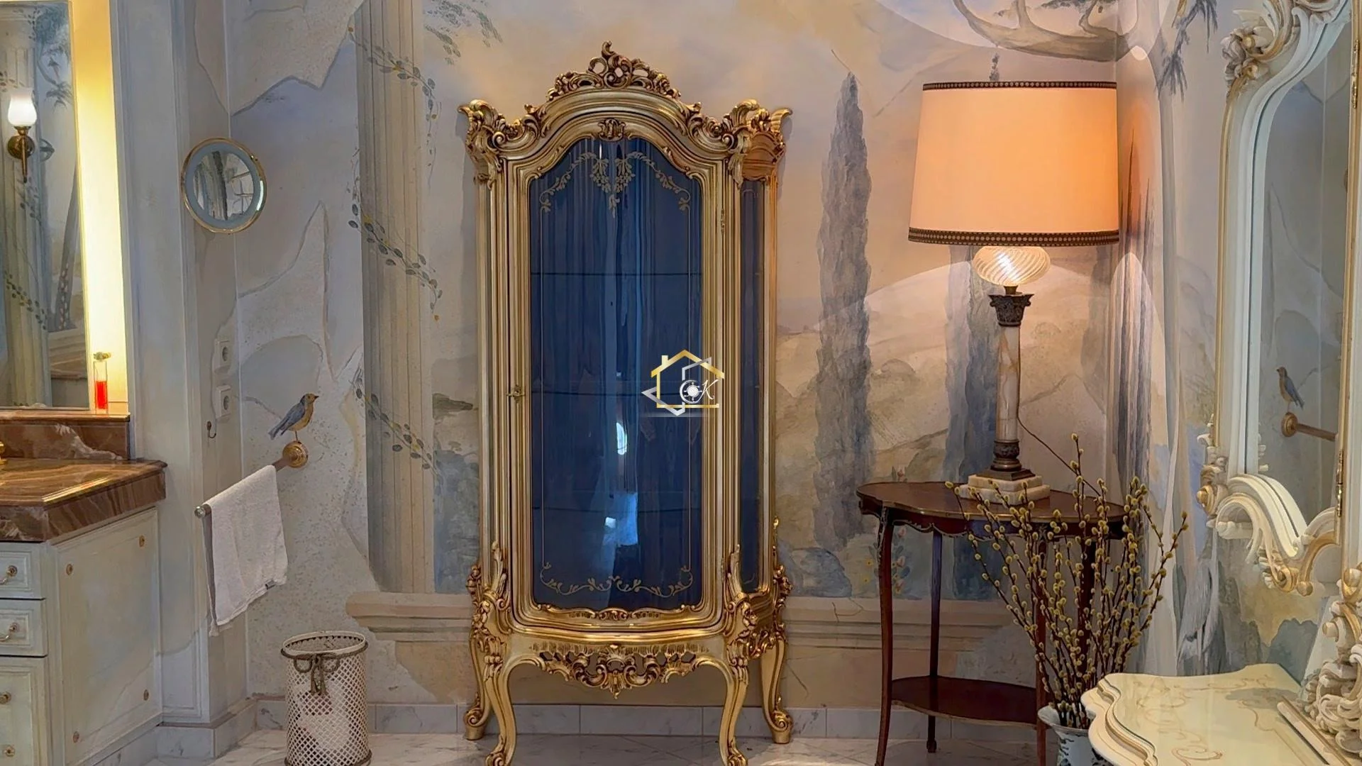 Das Obergeschoss bietet eine Küche und ein Esszimmer mit Zugang zu einer großen Terrasse, ein Kaminzimmer, ein Büro, fünf Schlafzimmer und fünf Bäder. Ein charmantes Studio-Apartment mit eigenem Eingang erweitert das Raumangebot.