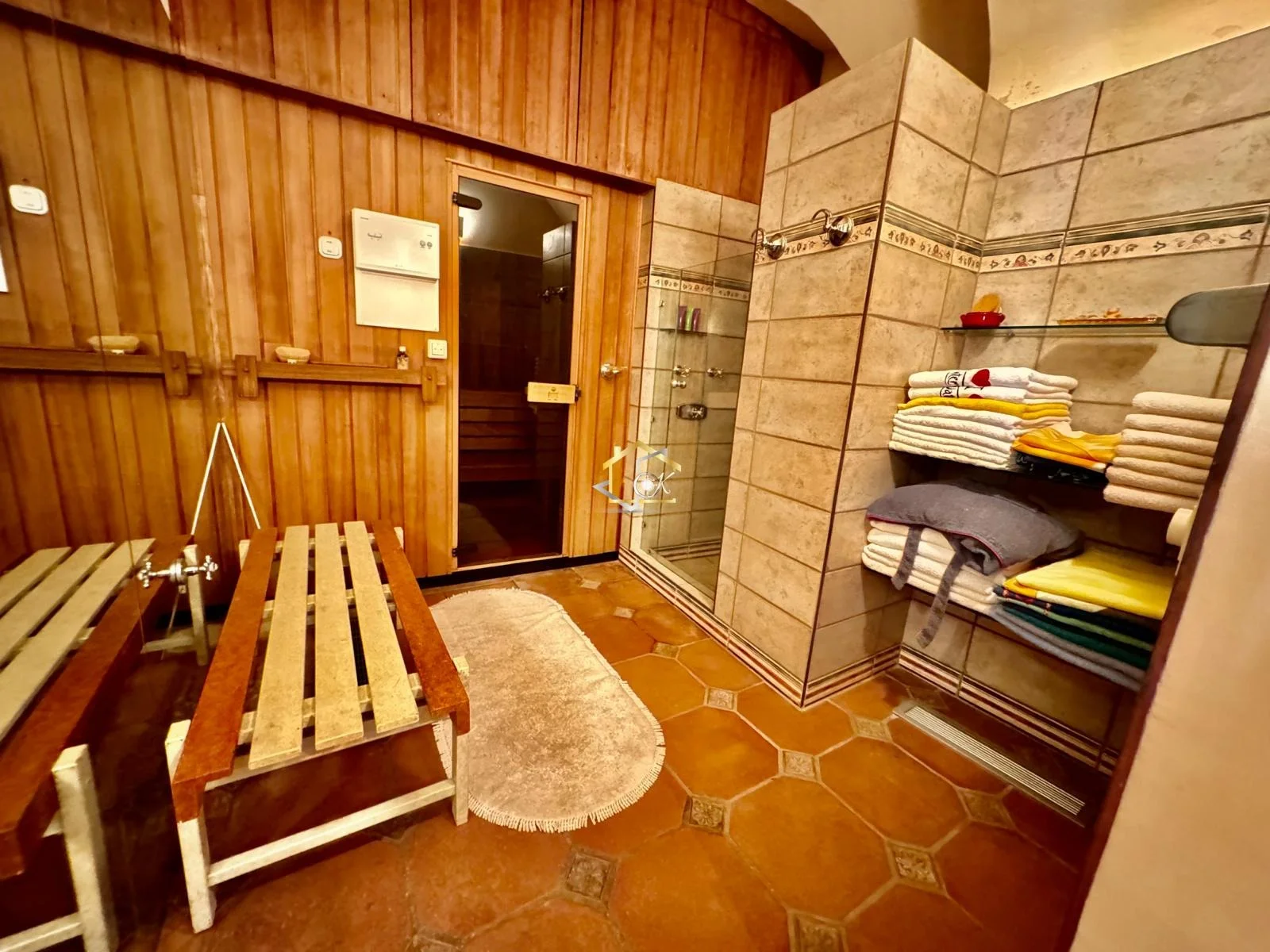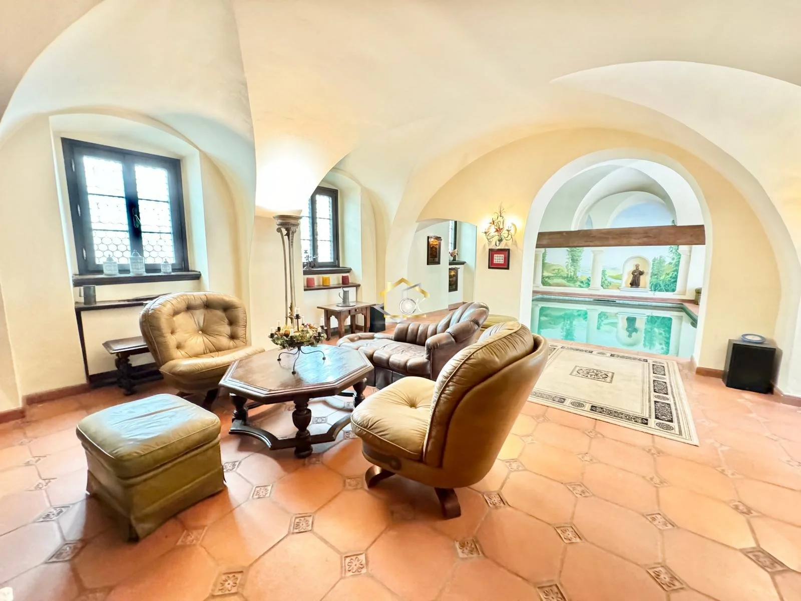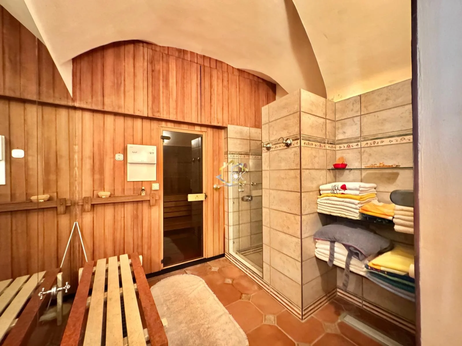 Das Erdgeschoss empfängt seine Besucher mit einem großzügigen Vorraum, der mit einem automatischen Boden-Türöffner ausgestattet ist. Es folgt ein helles, geräumiges Empfangszimmer mit direktem Zugang zum Garten und dem Wellnessbereich, der eine Sauna, ein Schwimmbad und einen Fitnessraum umfasst. Zusätzlich gibt es verschiedene gewölbte Räume, die vielseitig genutzt werden können, inklusive eines gemütlichen Stüberls.