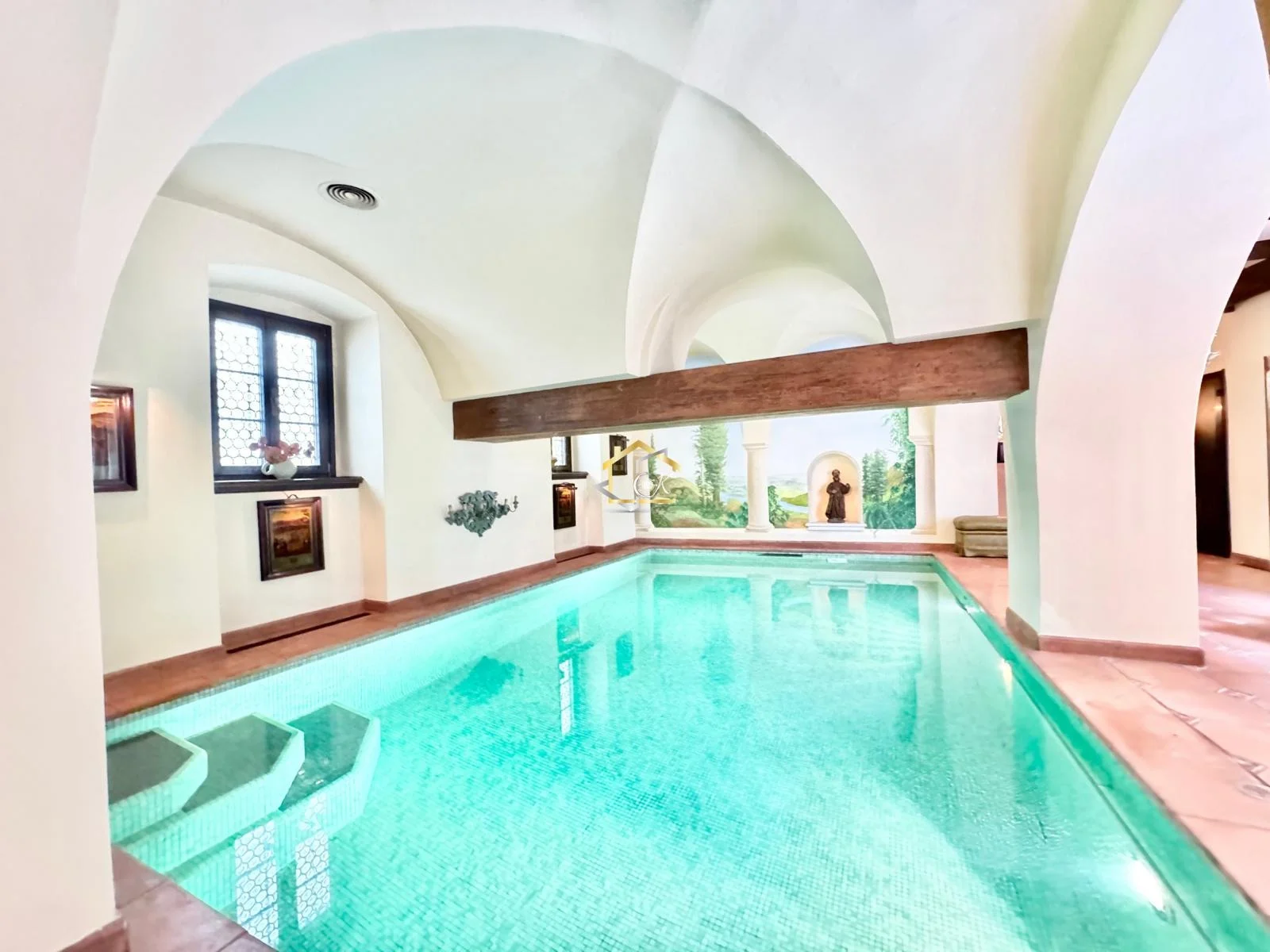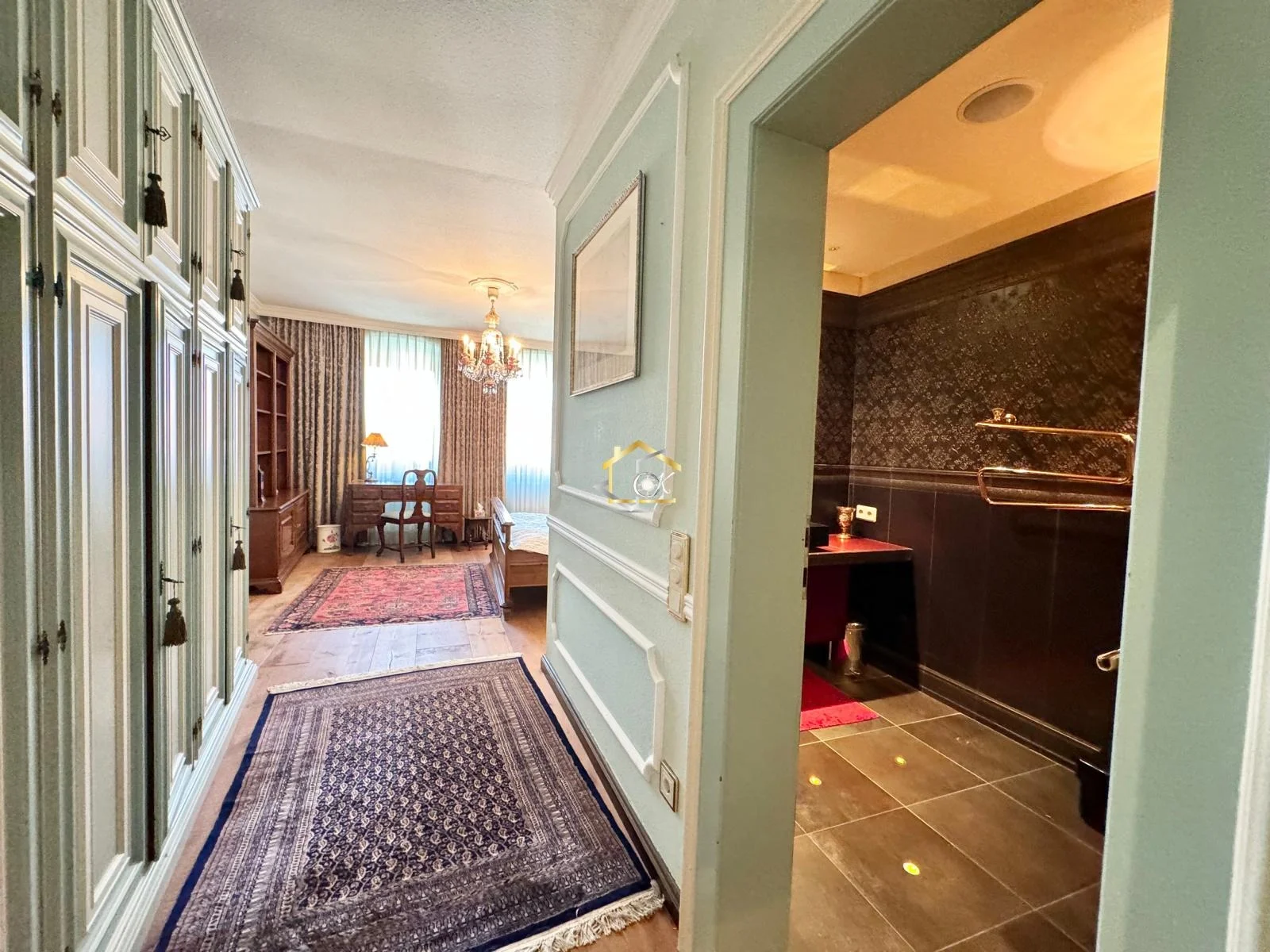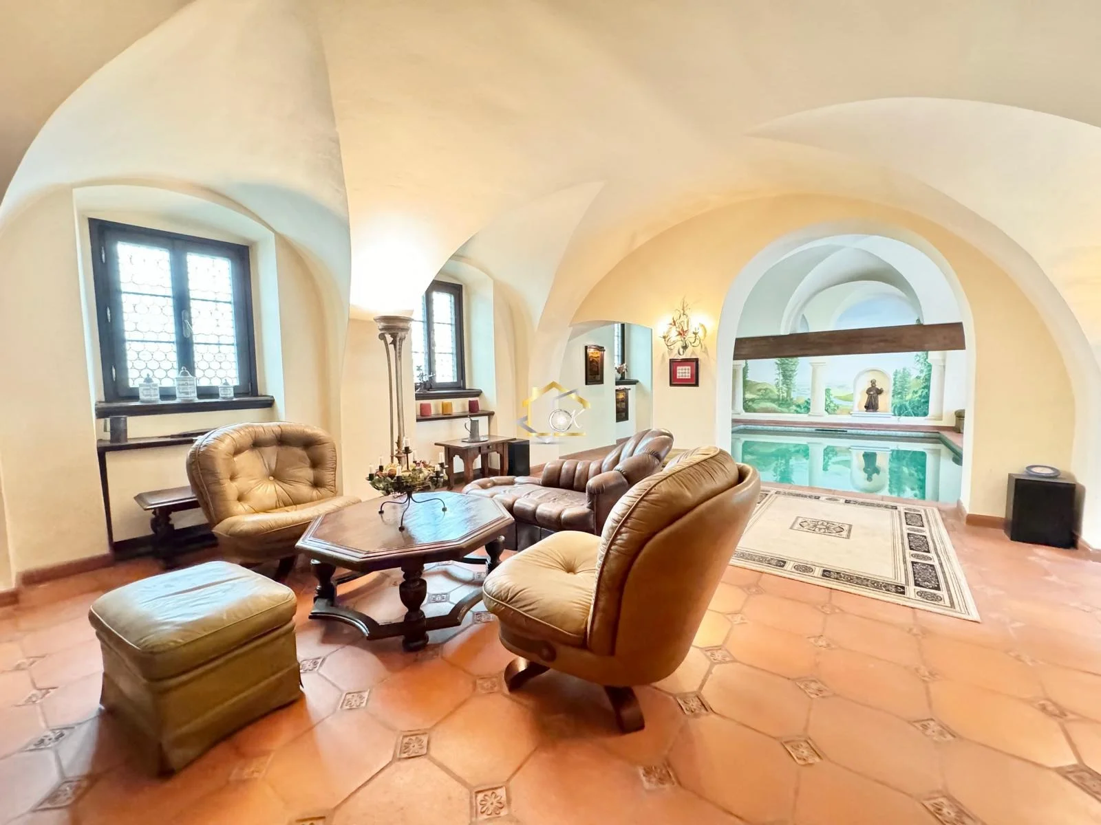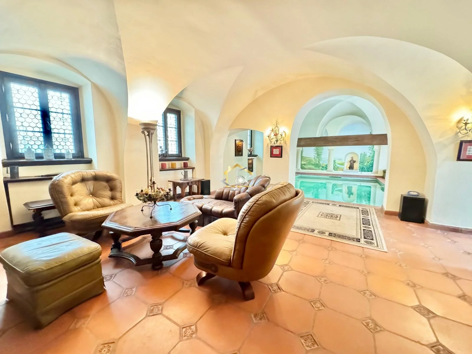 Das Erdgeschoss empfängt seine Besucher mit einem großzügigen Vorraum, der mit einem automatischen Boden-Türöffner ausgestattet ist. Es folgt ein helles, geräumiges Empfangszimmer mit direktem Zugang zum Garten und dem Wellnessbereich, der eine Sauna, ein Schwimmbad und einen Fitnessraum umfasst. Zusätzlich gibt es verschiedene gewölbte Räume, die vielseitig genutzt werden können, inklusive eines gemütlichen Stüberls.
