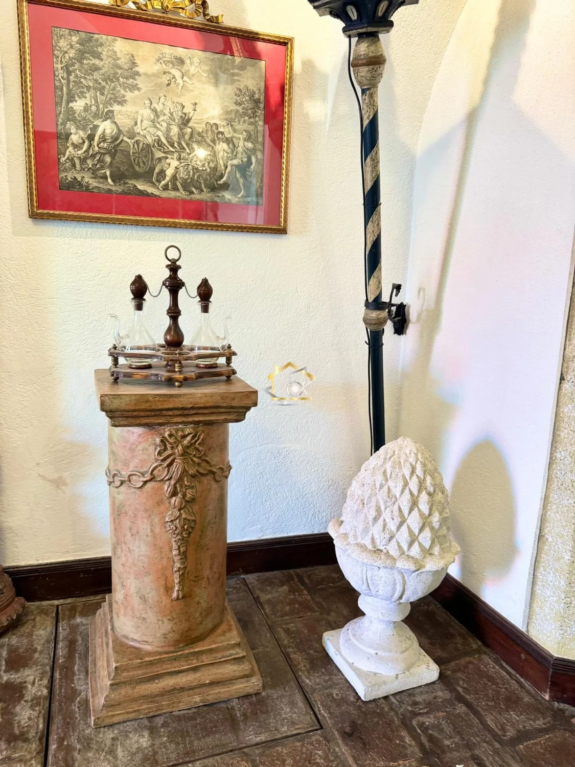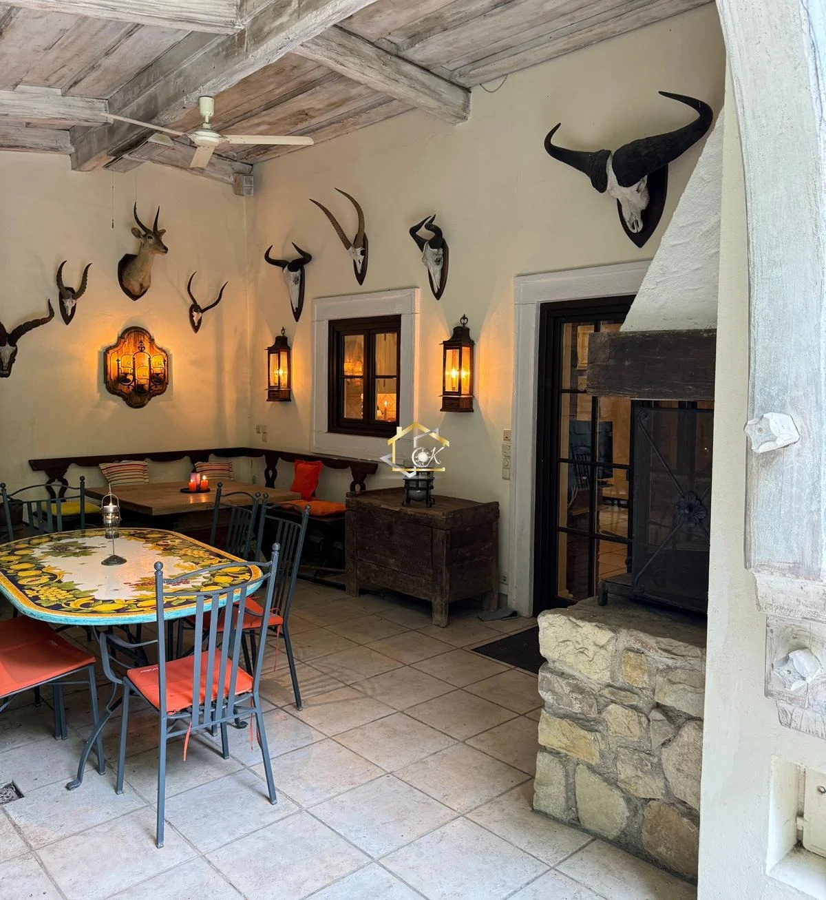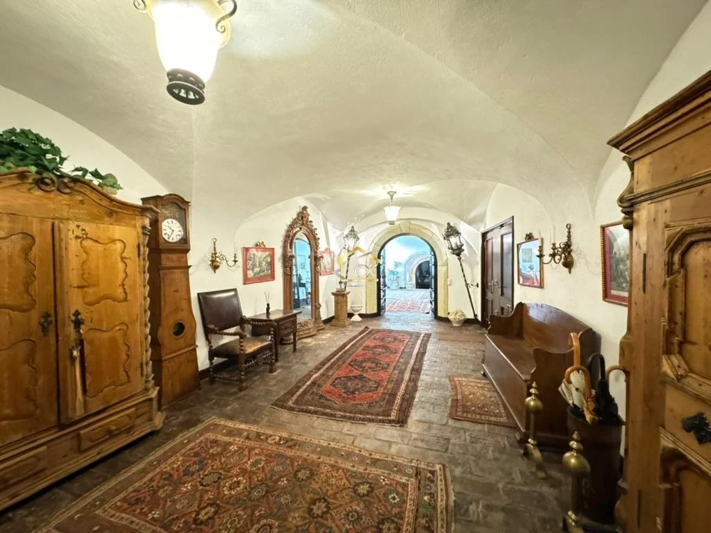 Diese majestätische Immobilie verbindet historische Architektur mit modernem Komfort und bietet beeindruckende, gut erhaltene Räumlichkeiten. Zu den Highlights zählen hohe Gewölbedecken, robuste Steinmauern und -böden sowie ein Kaminzimmer, das eine behagliche Atmosphäre schafft. Ein abgeschiedener Innengarten bietet eine grüne Oase mit Blick auf die detailreich verzierte Fassade und die alte Stadtmauer.