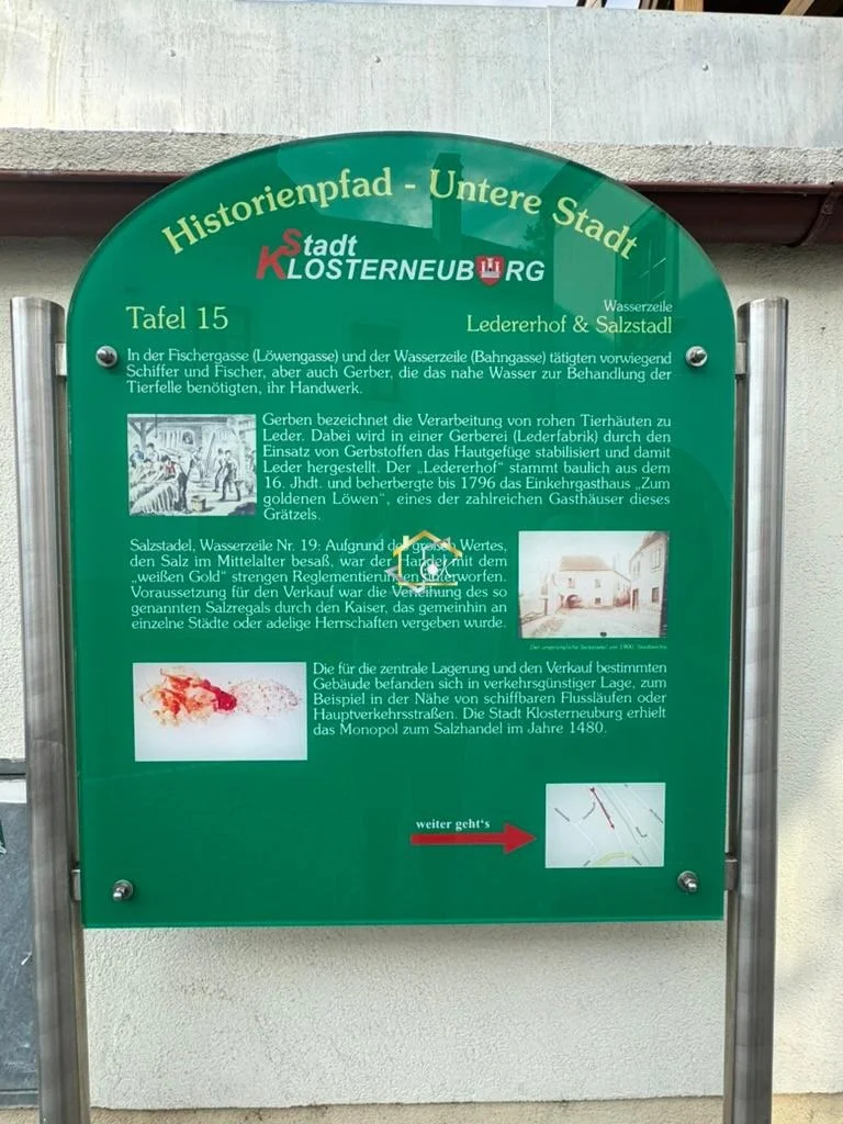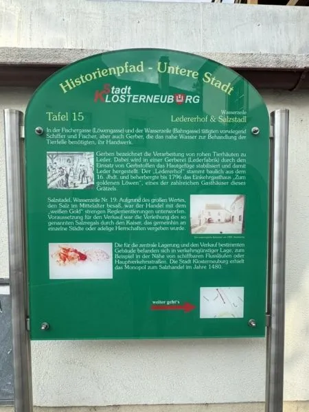 Die historische Villa „Burg Ledererhof“ befindet sich an der geschichtsträchtigen Wasserzeile in Klosterneuburg. Dieser Standort wurde erstmals im Jahr 1339 dokumentiert und beherbergt seitdem das prachtvolle Gebäudeensemble des Ledererhofs. Im späten Mittelalter umfasste der Ledererhof mehrere Gebäude, die als Produktionsstätten für Lederer und Färber dienten, deren Handwerk eng mit der Nähe zum Wasser verbunden war.